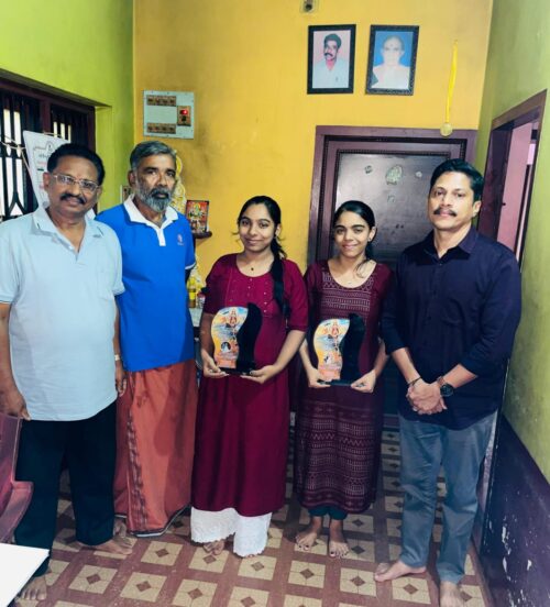 നേടിയ സംഗീത വിസ്മയമായ ലേഖാസ് സിംഗിംഗ് സിസ്റ്റേഴ്സ് നിവേദിത ദാസിനും നിരഞ്ജന ദാസിനും വീട്ടിലെത്തി ആദരിച്ചു.