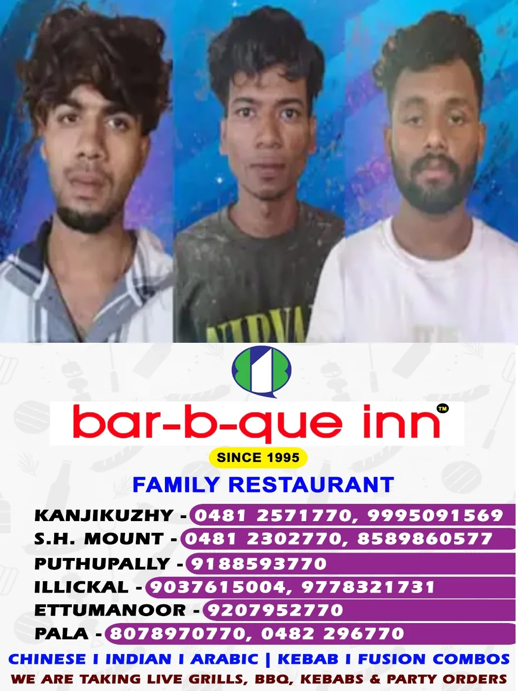 എക്സൈസ് ഇൻസ്പെക്ടർ ബിനോയുടെ നേതൃത്വത്തിലായിരുന്നു പരിശോധന. അസിസ്റ്റൻ്റ് എക്സൈസ് ഇൻസ്പെക്ടർ(ഗ്രേഡ്)മാരായ രാധാകൃഷ്ണൻ, ജസ്റ്റിൻ രാജ്, സിവിൽ എക്സൈസ് ഓഫീസർമാരായ അലക്സ്, വിപിൻദാസ് എന്നിവർ എക്സൈസ് സംഘത്തിലുണ്ടായിരുന്നു.