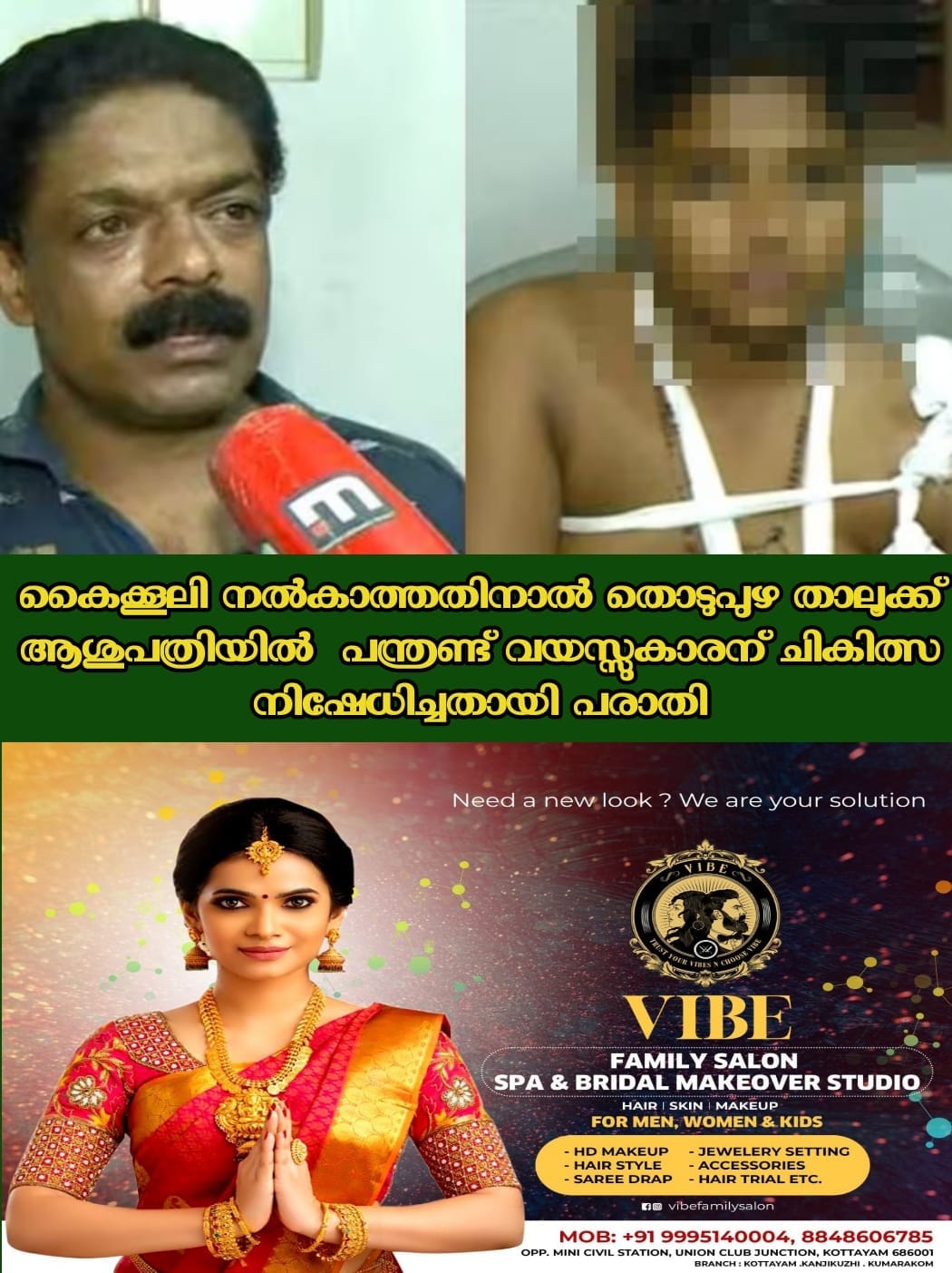 തൊടുപുഴ: ഇടുക്കി തൊടുപുഴ താലൂക്ക് ആശുപത്രിയില് കൈക്കൂലി നല്കാത്തതിനാല് പന്ത്രണ്ട് വയസ്സുകാരന് ചികിത്സ നിഷേധിച്ചതായി പരാതി.