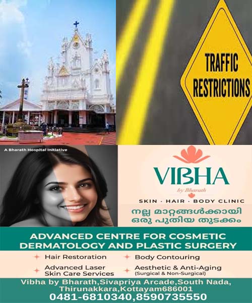 കോട്ടയം:മണർകാട് പള്ളിയിലെ റാസയോടനുബന്ധിച്ച് (06/09/2025) രാവിലെ 10:30 മുതൽ കോട്ടയത്ത് വിവിധയിടങ്ങളിൽ ഗതാഗത നിയന്ത്രണം; ഗതാഗത നിയന്ത്രണങ്ങൾ അറിയാം