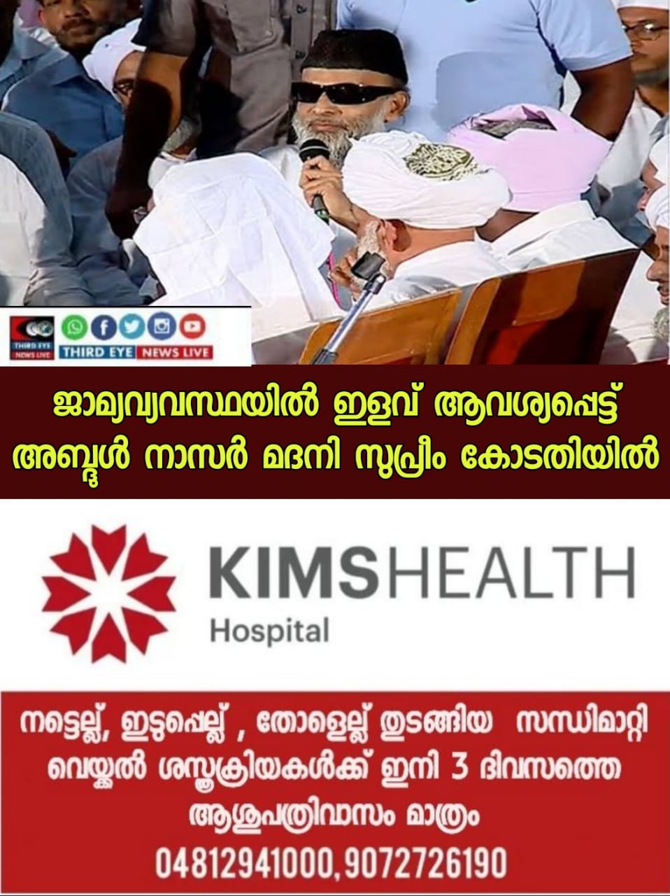 പിതാവിന്റെ ആരോഗ്യനിലയും മോശമാണ്. പിതാവിനെ കാണാൻ അവസരം നൽകണം. വിചാരണപൂർത്തിയാകുന്നത് വരെ ജന്മനാട്ടിൽ തുടരാൻ അനുവദിക്കണം. ബെംഗുളൂരുവിൽ തുടരുന്നത് വലിയ സാമ്പത്തിക ഭാരമാണ്. വിചാരണ പൂർത്തിയാക്കാൻ തന്റെ ആവശ്യം ഇനിയില്ലെന്നും മദനി സുപ്രീം കോടതിയിൽ സമർപ്പിച്ച അപേക്ഷയിൽ വ്യക്തമാക്കുന്നു