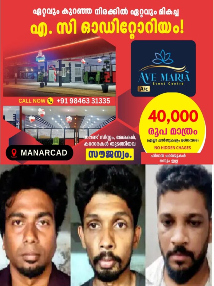പട്ടം പ്ലാമൂട് പണയില് വീട്ടില് ആഷിക് (32), അയിരൂപ്പാറ പ്ലാക്കോട് ഉടുമ്പിലാംപ്ലാകത്ത് വീട്ടില് ശ്രീജിത്ത് (32), കവടിയാർ നന്തൻകോട് മുല്ലശ്ശേരി ലെയിനില് അൻസാർ (34) എന്നിവരാണ് പിടിയിലായത്.