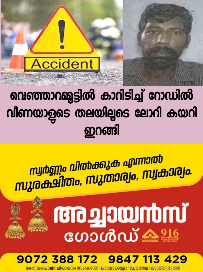തിരുവനന്തപുരം: വെഞ്ഞാറമൂട് ആലന്തറയിൽ കാർ ഇടിച്ചു റോഡിൽ വീണയാൾ തലയിലൂടെ ലോറി കയറിയിറങ്ങി മരിച്ചു. നാഗർകോവിൽ ശൂരപള്ളം അഗസ്തീശ്വരം സ്വദേശി കൃഷ്ണകുമാര് (43) ആണ് മരിച്ചത്. പുലർച്ചെ അഞ്ചുമണിയോടെ ആലന്തറ പെട്രോൾ പമ്പിനു സമീപമാണ് അപകടം സംഭവിച്ചത്.
