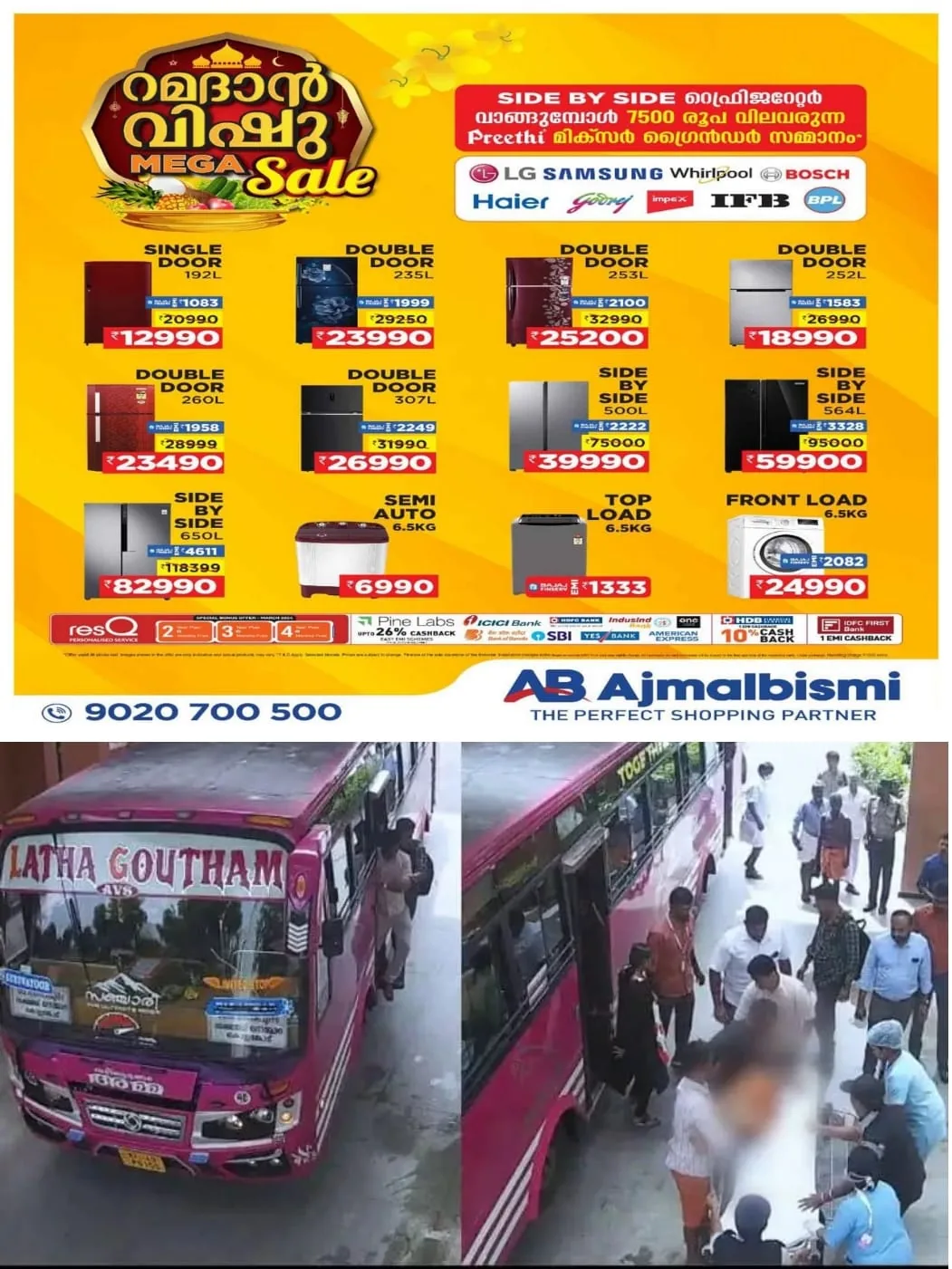 രണ്ടാമത്തെയാളെ കൊണ്ടുപോകാൻ വാഹനം കാത്തു നില്ക്കുന്നതിനിടെയാണ് സ്വകാര്യ ബസ് ജീവനക്കാരുടെ അവസരോചിതമായ ഇടപെടലുണ്ടായത്. ഈ സമയം ഇതുവഴി കടന്നുവന്ന ഗോവിന്ദപുരം-തൃശൂര് റൂട്ടിലോടുന്ന ലതഗൗതം ബസ് സ്ഥലത്ത് നിര്ത്തുകയായിരുന്നു.
