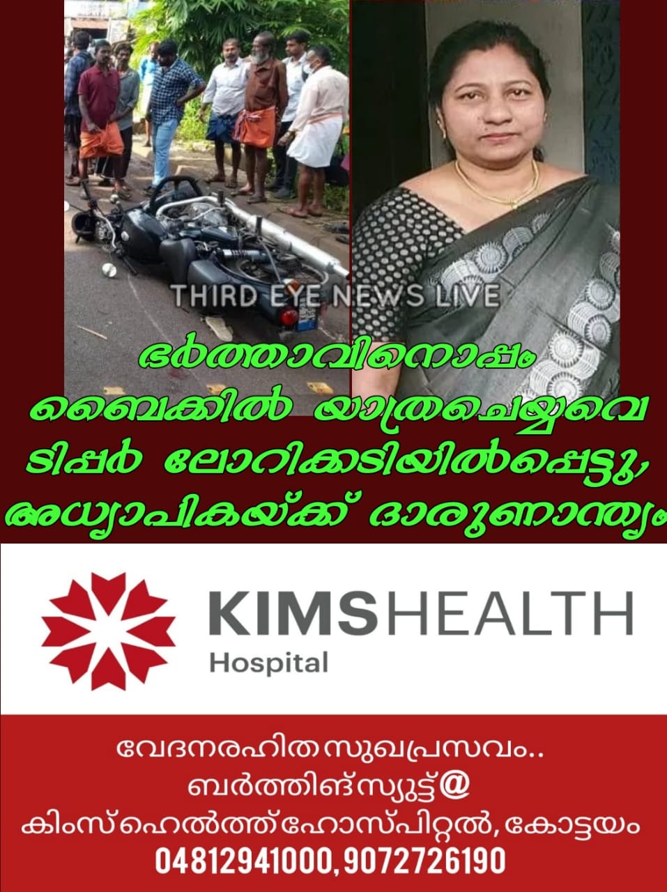 അപകടത്തില് ജീന തെറിച്ച് വീണ് ലോറിയുടെ അടിയില്പ്പെടുകയായിരുന്നു. നവജീവന് സ്കൂള് ടീച്ചറാണ് മരിച്ച ജീന
