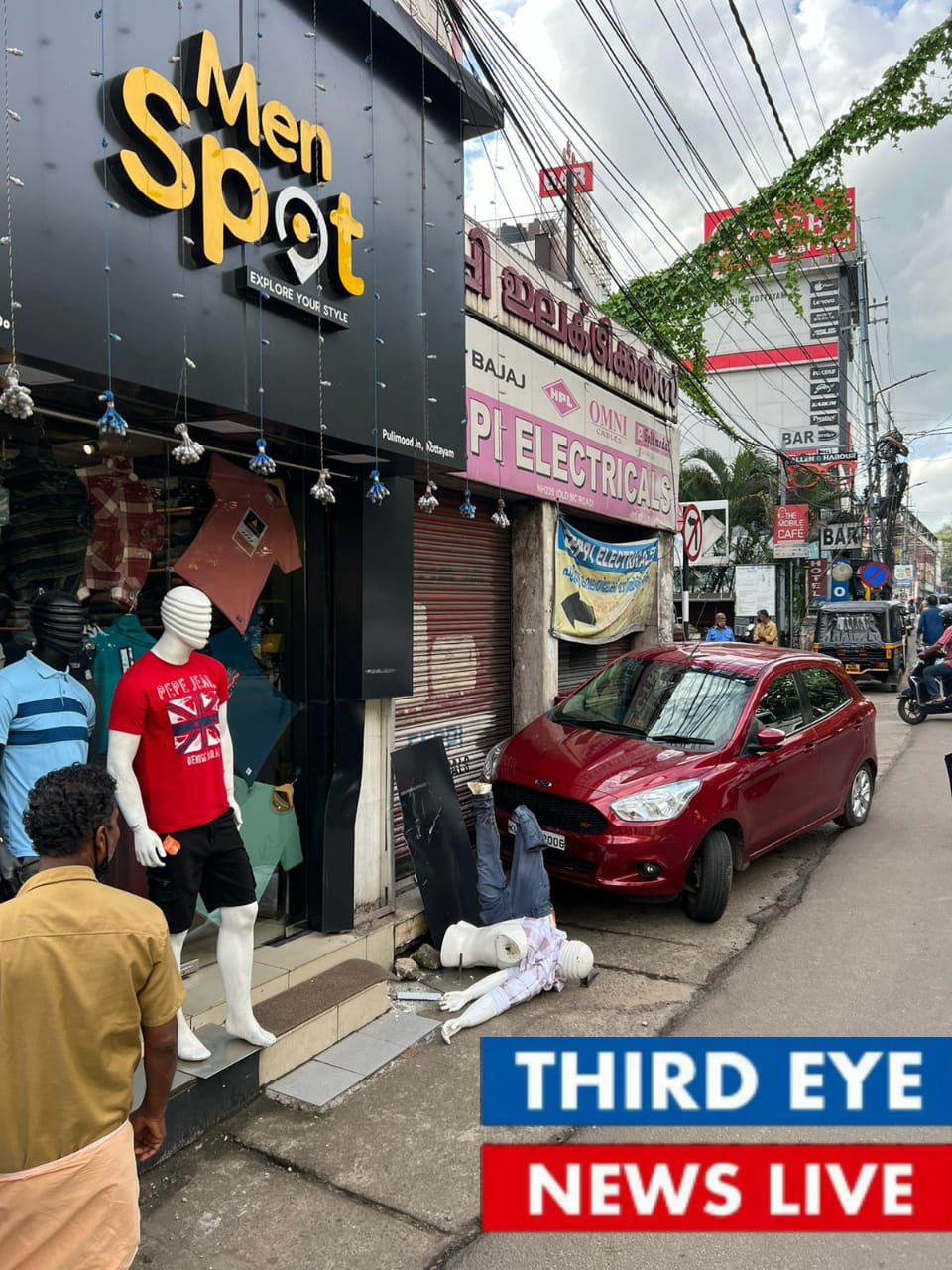 ​കോട്ടയം പുളിമൂട് ജംഗ്ഷന് സമീപം പിന്നി​ലേക്ക് എടുത്ത കാർ തട്ടി ഒരാൾക്ക് പരിക്ക് ; ഒഴിവായത് വൻ ദുരന്തം
