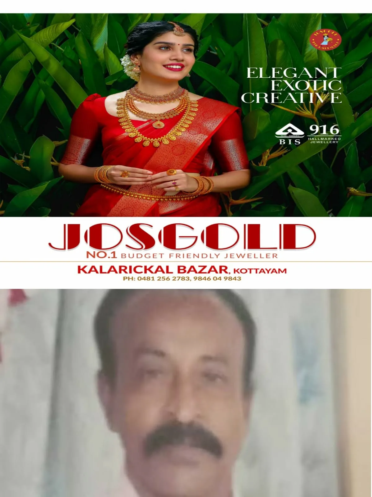സംസ്‌കാരം പിന്നീട്. ഭാര്യ:തങ്കമ്മ ജോസഫ് (പുളിഞ്ചുമൂട്ടിൽ, വായിപ്പൂർ‌), മക്കൾ: സോണിയ, സോജി, സോമിയ. മരുമക്കൾ: മെജോ (കടംതോട് തൃക്കൊടിത്താനം), മഞ്ജു (കരിക്കണ്ടം, കുറുമ്പനാടം), ടോജി (അർത്തുശേരിയിൽ, കാവാലം).