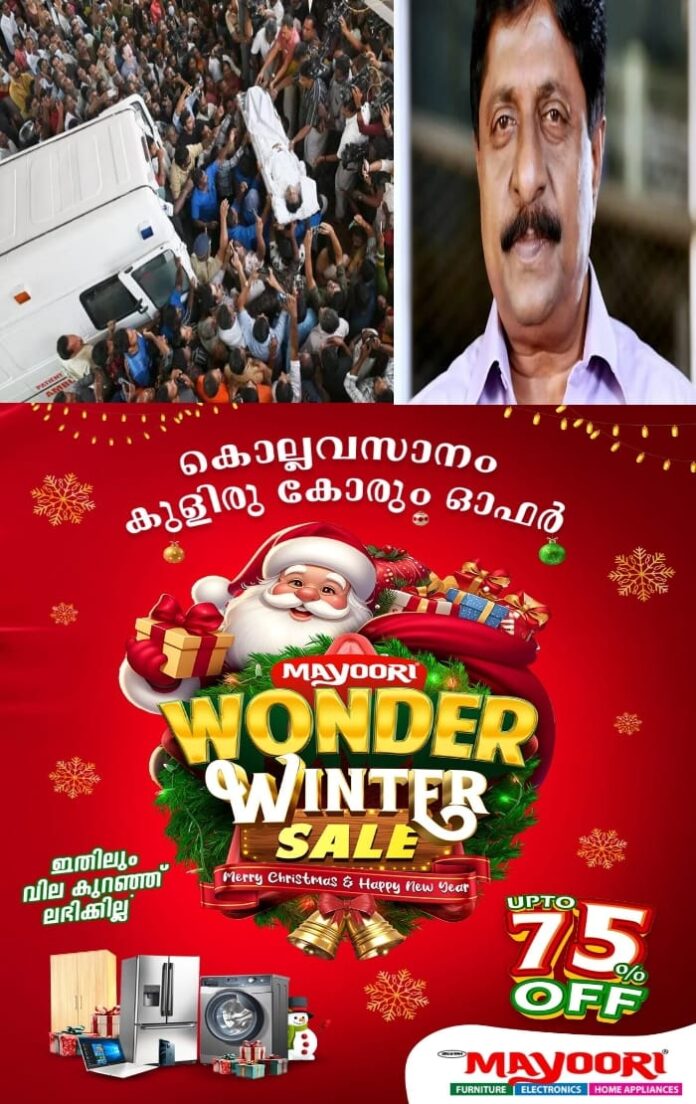 രാഷ്ട്രീയ – സിനിമ- സാംസ്കാരിക രംഗത്തെ നിരവധി പ്രമുഖരാണ് അദ്ദേഹത്തിന് അന്ത്യാഞ്ജലി അർപ്പിച്ചത്. മലയാളികളുടെ മുഴുവൻ ഇഷ്ടവും നെഞ്ചിലേറ്റിയാണ് ശ്രീനിവാസൻ മടങ്ങുന്നത്.