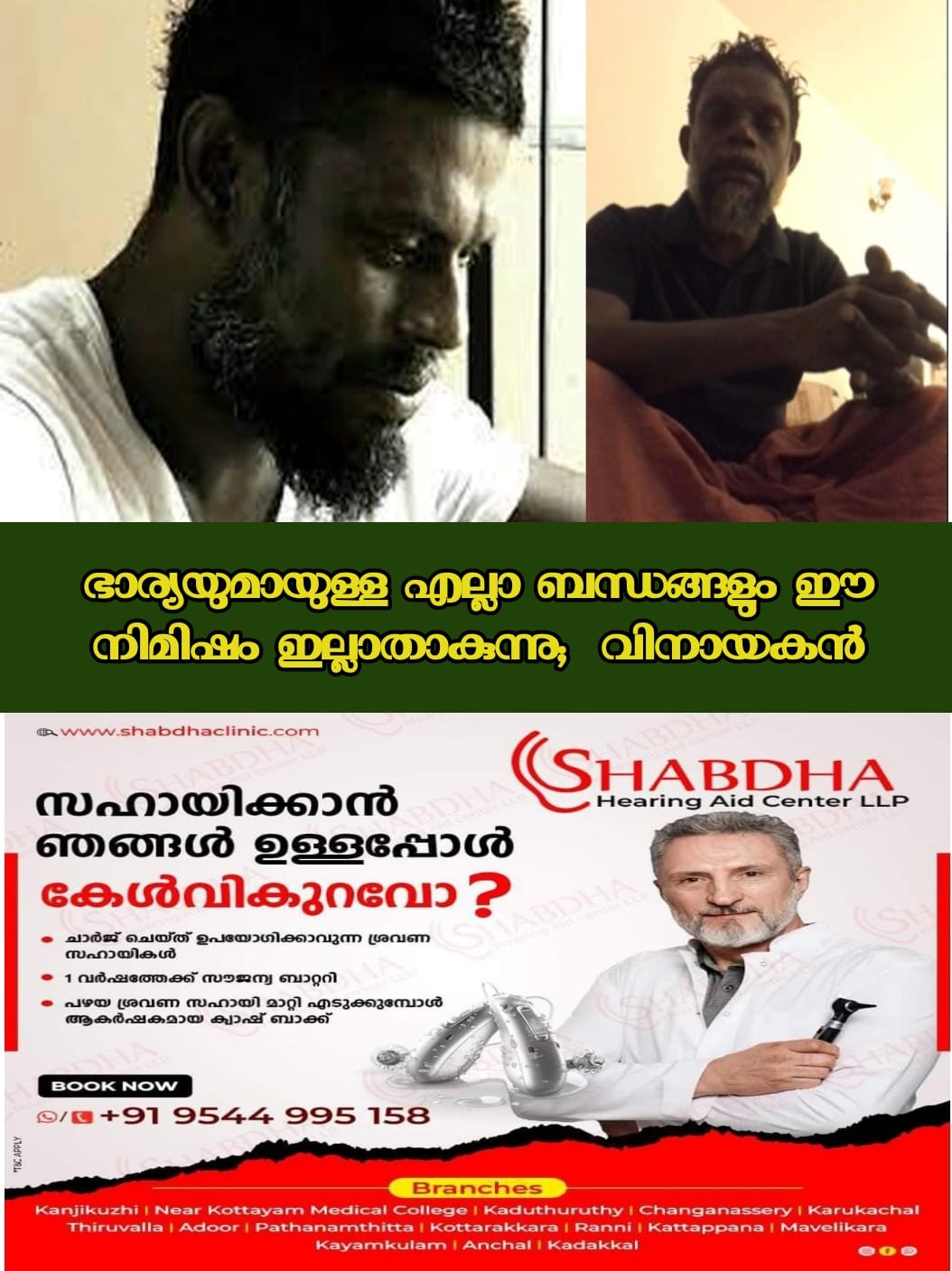 ഞാനും എന്റെ ഭാര്യയുമായിട്ടുള്ള, എല്ലാ ഭാര്യഭർത്തൃ ബന്ധങ്ങളും നിയമപരമായിട്ടുള്ള എല്ലാ ബന്ധങ്ങളും ഈ ഒരു നിമിഷം കൊണ്ട് ഇല്ലാതാകുന്നു. എല്ലാവർക്കും നന്ദി’, എന്നാണ് വിനായകൻ വിഡിയോയിൽ പറഞ്ഞത്.