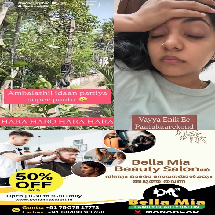 കൂടാതെ ‘സരക്ക് വച്ചിരുക്കാ’ എന്ന സിനിമാ ഗാനം വച്ച വീഡിയോയാണ് നടി അടുത്ത സ്റ്റോറിയില് പങ്കുവച്ചിരിക്കുന്നത്. ”അമ്ബലത്തില് ഇടാന് പറ്റിയ സൂപ്പര് പാട്ട്, ഹര ഹരോ ഹര ഹരോ” എന്ന ക്യാപ്ഷനോടെയാണ് ഈ വീഡിയോ പങ്കുവച്ചിരിക്കുന്നത്. ”എനിക്കും എന്റെ ഫോണിനും ഈ മ്യൂസിക് ബീറ്റിനൊപ്പം വൈബ് അടിക്കണം” എന്നാണ് മറ്റൊരു സ്റ്റോറിയില് അഹാന പറഞ്ഞത്.