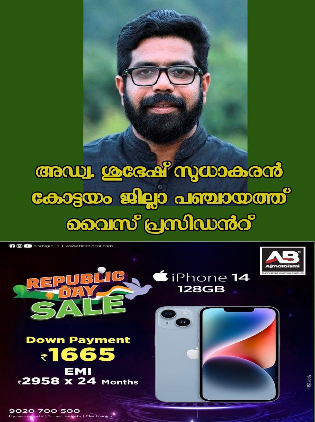 അഡ്വ. ശുഭേഷ് സുധാകരന്‍ കോട്ടയം ജില്ലാ പഞ്ചായത്ത് വൈസ് പ്രസിഡന്‍റ്; എരുമേലി ഡിവിഷനില്‍നിന്നുള്ള ജില്ലാ പഞ്ചായത്തംഗമായ ശുഭേഷിന് 14 വോട്ടും യുഡിഎഫിലെ ജോസ് മോന്‍ മുണ്ടയ്ക്കലിന് ആറുംവോട്ടും ലഭിച്ചു