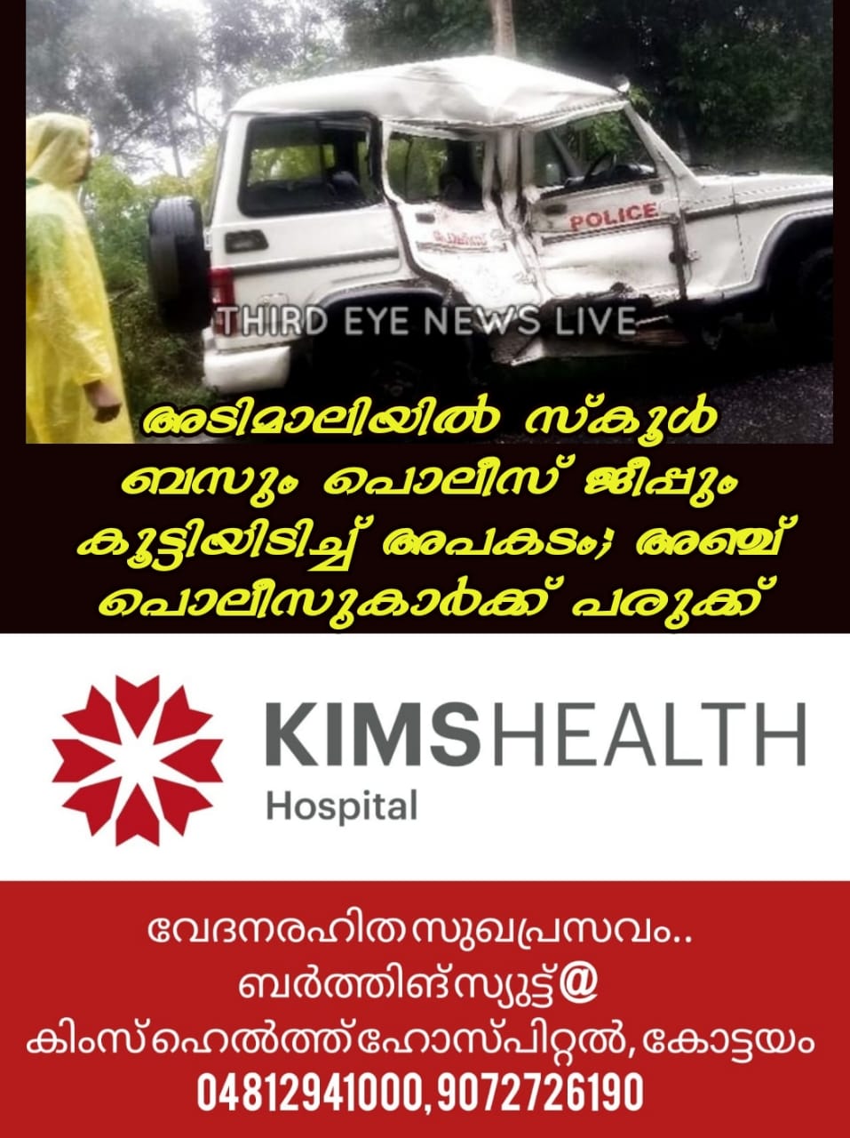 അപകടത്തിൽ പൊലീസ് ജീപ്പിൽ ഉണ്ടായിരുന്ന അഞ്ച് പേർക്ക് പരുക്കേറ്റു. ഒരു വനിതാ കോൺസ്റ്റബിളും നാല് പൊലീസുകാരുമാണ് ജീപ്പിൽ ഉണ്ടായിരുന്നത്.