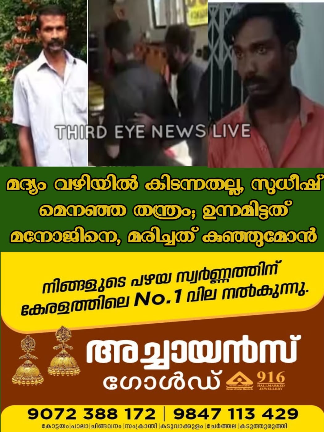 മദ്യം വഴിയിൽ കിടന്ന് കിട്ടിയതായിരുന്നില്ല. കൊലപാതകം നടത്താനായി സുധീഷ് കരുതിക്കൂട്ടി വിഷം കലർത്തി കൊണ്ടവന്നതായിരുന്നു. കുഞ്ഞുമോനെ കൊലപ്പെടുത്താനായിരുന്നില്ല സുധീഷ് ലക്ഷ്യമിട്ടിരുന്നത്. കൂടെ കുടിക്കാനുണ്ടായിരുന്ന മനോജിനെ കൊല്ലാനാണ് സുധീഷ് ഉന്നം ഇട്ടത്.