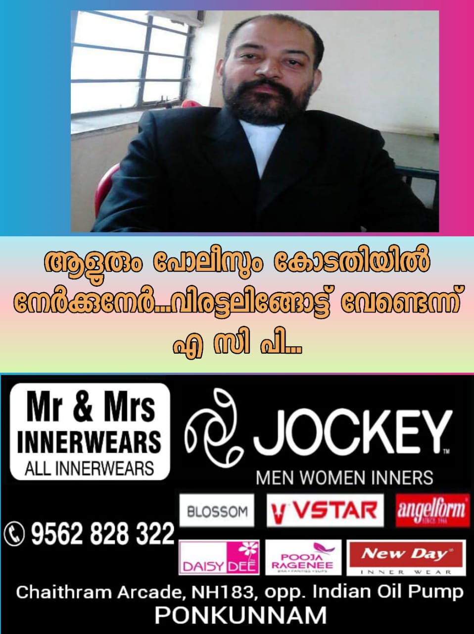 ഇലന്തൂരിലെ നരബലിയിൽ പ്രതികൾക്കായി ഹാജരാക്കുമെന്ന് അഡ്വക്കേറ്റ് ആളൂർ അറിയിച്ചതിന് പിന്നാലെ കോടതിക്കുള്ളിൽ ആളൂരും പൊലീസുമായി തർക്കം. പ്രതികളെ കാണാൻ അനുവദിക്കണമെന്നായിരുന്നു ആളൂരിന്റെ ആവശ്യം. മജിസ്‌ട്രേറ്റിന്റെ അനുമതി വേണമെന്ന് എ സി പി ജയകുമാർ വ്യക്തമാക്കിയതോടെയാണ് സംഭവം തർക്കത്തിലേക്കെത്തിയത്. പ്രതികളെ കാണാൻ അനുവദിക്കണമെന്ന് ആവശ്യപ്പെട്ട് അഭിഭാഷകൻ അപേക്ഷ തയാറാക്കുകയാണ്. ഭീഷണി വേണ്ടെന്ന് അഭിഭാഷകനോട് എ സി പിയും, എ സി പിക്കെതിരെ നടപടി വേണമെന്ന് അഭിഭാഷകനും ആവശ്യപ്പെട്ടു.