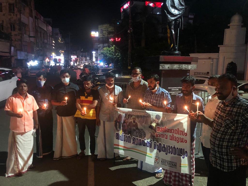 കോട്ടയം: താലിബാനെതിരെ പൊരുതുന്ന അഫ്ഗാൻ ജനതയ്ക്ക് ഐക്യദാർഢ്യവുമായി യൂത്ത് കോൺഗ്രസ് ജില്ലാ കമ്മിറ്റി. അഫ്ഗാൻ ജനതയ്ക്ക് ഐക്യദാർഢ്യം പ്രഖ്യാപിച്ച് യൂത്ത് കോൺഗ്രസ് ജില്ലാ കമ്മിറ്റിയുടെ നേതൃത്വത്തിൽ ഗാന്ധ്സ്ക്വയറിൽ ഐക്യദാർഢ്യ ജ്വാല തെളിയിച്ചു. പരിപാടികൾ യൂത്ത് കോൺഗ്രസ് സംസ്ഥാന സെക്രട്ടറി അഡ്വ.ടോം കോര അഞ്ചേരി ഉദ്ഘാടനം ചെയ്തു. യൂത്ത് കോൺഗ്രസ് ജില്ലാ പ്രസിഡന്റ് ചിന്റു കുര്യൻ ജോയി അദ്ധ്യക്ഷത വഹിച്ചു. കോൺഗ്രസ് നേതാക്കളായ അജീഷ് വടവാതൂർ, അനൂപ് അബൂബക്കർ, അബുതാഹിർ, റാഷ്മോൻ ഓറ്റാത്തിൽ, രഞ്ജിത്ത് ശിവദാസ് എന്നിവർ പ്രസംഗിച്ചു.