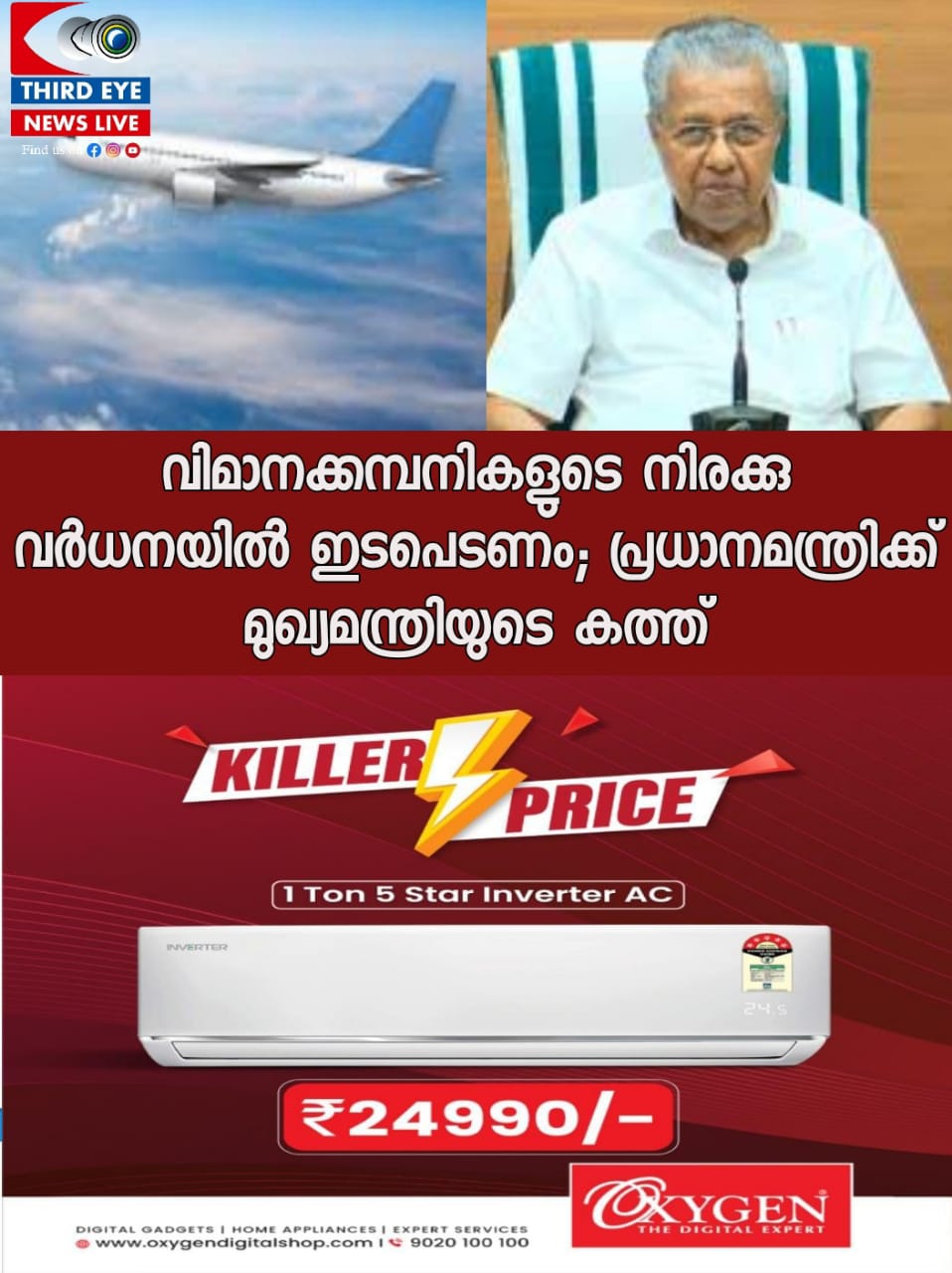 നിരക്കുകൾ മിതപ്പെടുത്തണമെന്ന സംസ്ഥാന സർക്കാരിൻറെ ആവശ്യത്തിൽ അനുകൂല നിലപാട് വിമാന കമ്പനികൾ സ്വീകരിച്ചില്ലെന്നും, വിഷയത്തിൽ കേന്ദ്രസർക്കാർ അടിയന്തരമായി ഇടപെടണമെന്നും കത്തിൽ ആവശ്യപ്പെടുന്നു.