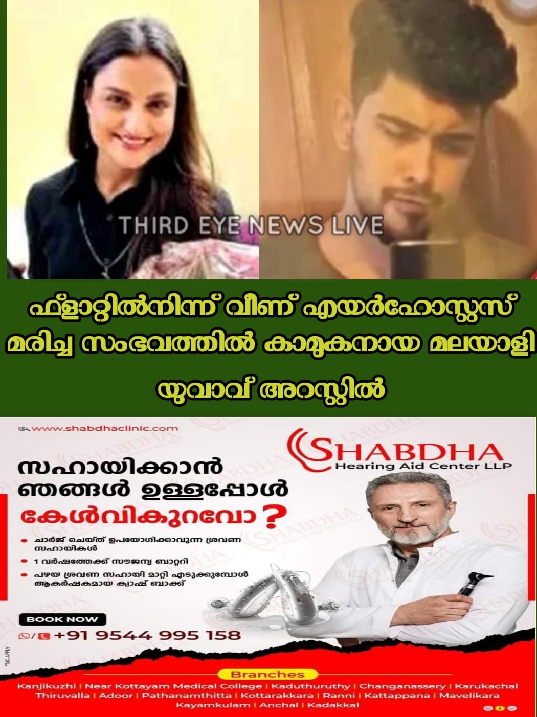ആദേശും എയർഹോസ്റ്റസായ അർച്ചനയും ആറുമാസമായി അടുപ്പത്തിലായിരുന്നുവെന്നാണ് പോലീസ് പറയുന്നത്. ഡേറ്റിങ് വെബ്സൈറ്റിലൂടെയാണ് ഇരുവരും പരിചയപ്പെട്ടത്. ദുബായിൽനിന്ന് നാലുദിവസം മുൻപാണ് യുവതി കോറമംഗലയിലെ യുവാവിന്റെ ഫ്ളാറ്റിലെത്തിയത്. ഇവിടെ താമസിച്ചുവരുന്നതിനിടെയാണ് യുവതി മരിച്ചത്.