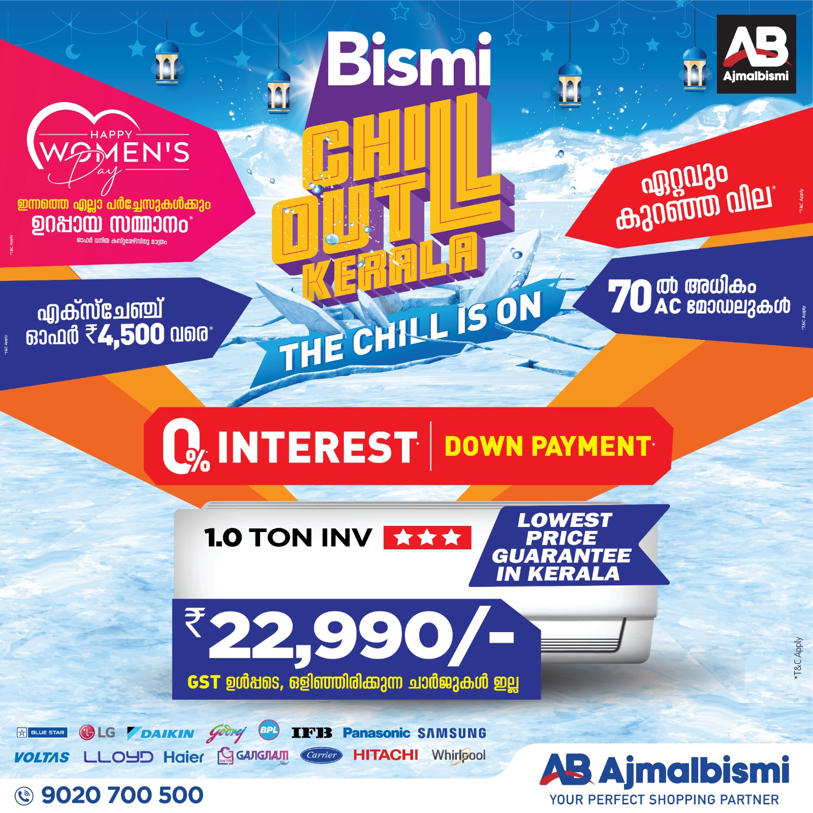 കോട്ടയം: സൗത്ത് ഇന്ത്യയിലെ ഏറ്റവും വലിയ റീടൈൽ ഗ്രൂപ്പായ അജ്മൽബിസ്മിയിൽ സമ്മർ സെയിലായ CHILL OUT KERALA നടക്കുന്നു.