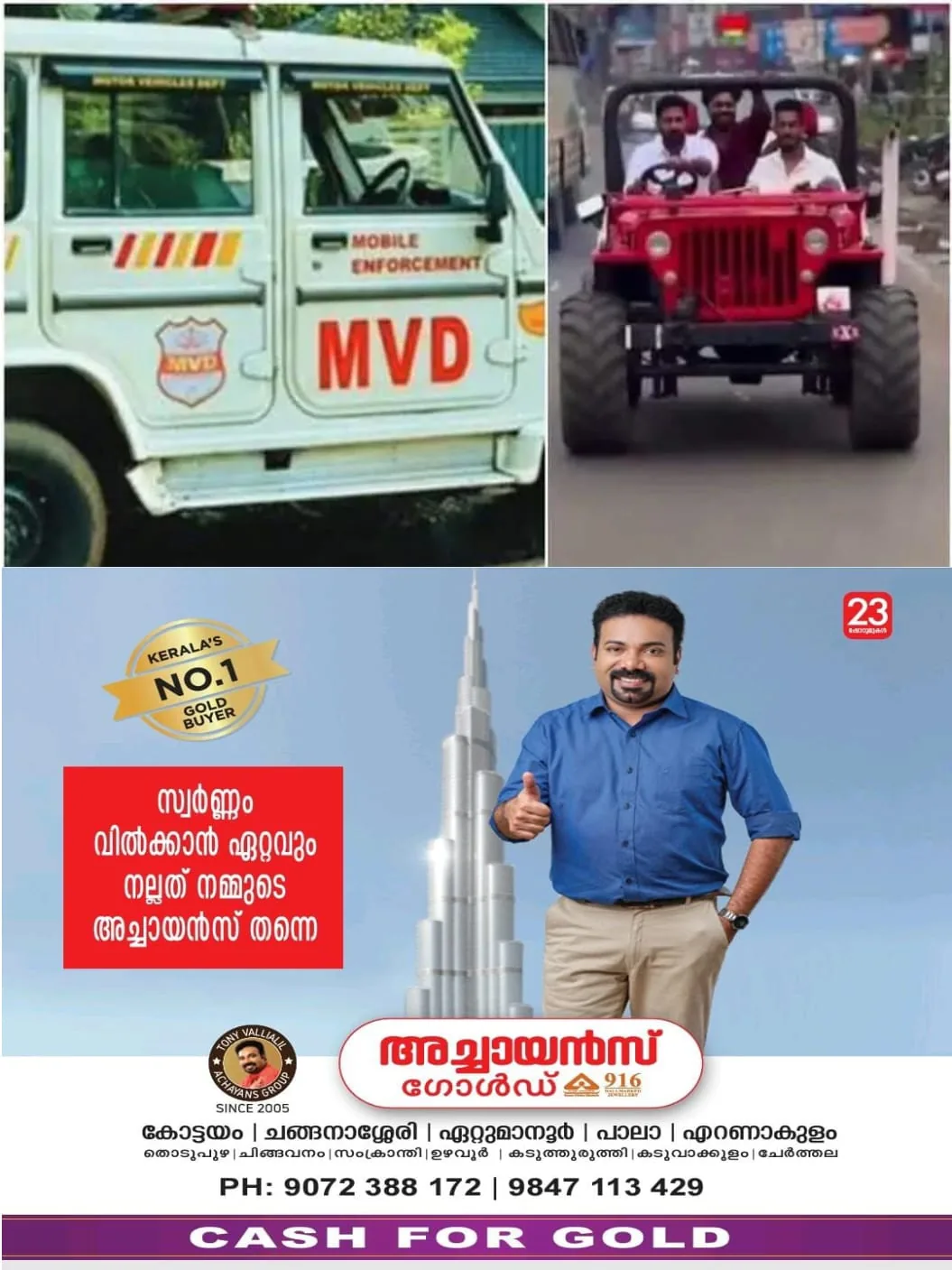 കഴിഞ്ഞ ഞായറാഴ്ചയാണ് നമ്ബർ പ്ലേറ്റില്ലാത്ത, രൂപമാറ്റം വരുത്തിയ ജീപ്പില് സീറ്റ് ബെല്റ്റ് ധരിക്കാതെ ആകാശ് തില്ലങ്കേരി യാത്ര നടത്തിയത്. ആകാശ് തില്ലങ്കേരി സഞ്ചരിച്ച രൂപമാറ്റം വരുത്തിയ വാഹനം വയനാട് മോട്ടോർ വാഹന വകുപ്പ് തിരിച്ചറിഞ്ഞ് നടപടിയെടുത്തു. വാഹനത്തിന്റെ രൂപമാറ്റം വരുത്തിയത് ഉള്പ്പെടെയുള്ള 9 കുറ്റങ്ങളാണ് എംവിഡി ചുമുത്തിയിരിക്കുന്നത്. 45,500 രൂപ പിഴയാണ് ഈ കുറ്റങ്ങള്ക്കായി ചുമത്തിയിട്ടുള്ളത്. എല്ലാ കേസും വാഹന ഉടമയായ മലപ്പുറം സ്വദേശി സുലൈമാനെതിരായാണ്. വാഹനം ഓടിച്ച ആകാശ് തില്ലങ്കേരിക്കെതിരെ കേസൊന്നും എടുത്തിട്ടില്ല. ലൈസൻസ് ഇല്ലാതെ ഓടിക്കാൻ വാഹനം വിട്ടു നല്കിയെന്ന കേസും ഉടമക്കെതിരെയാണ്. ആകാശ് തില്ലങ്കേരിയുടെ ലൈസൻസ് വിവരങ്ങള് ലഭ്യമാകാത്ത സാഹചര്യത്തിലാണ് ഈ കുറ്റം ചുമത്തിയത്.
