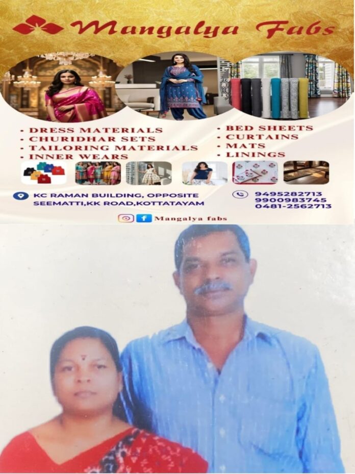 ഇന്നു രാവിലെ പതിനൊന്നരയോടെ ഓട്ടോ ഡ്രൈവറായ മൂത്ത മകൻ വീട്ടിലേക്ക് വരുമ്പോഴാണ് കൊലപാതക വിവരം അറിയുന്നത്. വാതിൽ തുറന്നു കിടക്കുകയായിരുന്നു. അടുക്കളയിൽ പൈപ്പ് തുന്നിട്ടിരുന്നു. അമ്മയെ കമിഴ്ന്നു കിടക്കുന്ന നിലയിൽ അടുക്കളയിൽ കണ്ടെത്തി. നിലത്ത് രക്തം വാർന്നു കിടപ്പുണ്ടായിരുന്നു. തൊട്ടടുത്ത മുറിയിൽ അച്ഛൻ തൂങ്ങി നിൽക്കുന്നതു കണ്ടു. അമ്മയ്ക്ക് അനക്കമുണ്ടായിരുന്നതിനാൽ അയൽവാസികളെ അറിയിച്ച് ഉടൻ മണർകാട് സെന്റ് മേരീസ് ആശുപത്രിയിലേക്ക് കൊണ്ടുപോയി. വഴിമധ്യേ മരണം സംഭവിച്ചു.