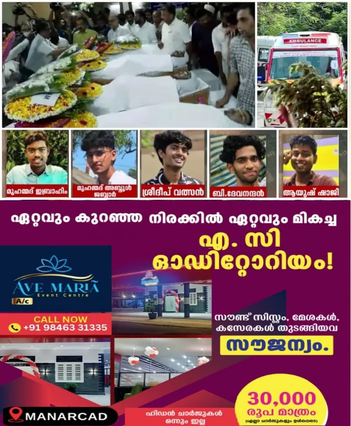 പാലക്കാട് സ്വദേശി ശ്രീദീപ് വത്സൻ, മലപ്പുറം കോട്ടക്കൽ സ്വദേശി ദേവനന്ദൻ, കണ്ണൂർ സ്വദേശി മുഹമ്മദ് അബ്ദുൽ ജബ്ബാർ, ലക്ഷദ്വീപ് സ്വദേശി മുഹമ്മദ് ഇബ്രാഹിം, കോട്ടയം സ്വദേശി ആയുഷ് ഷാജി എന്നിവരാണ് ദാരുണമായ അപകടത്തിൽ മരിച്ചത്. മരിച്ച ദേവാനന്ദന്റെ രക്ഷിതാക്കൾ മെഡിക്കൽ കോളേജിൽ പൊതുദർശനം നടക്കുന്ന സ്ഥലത്തെത്തിയിട്ടുണ്ട്.