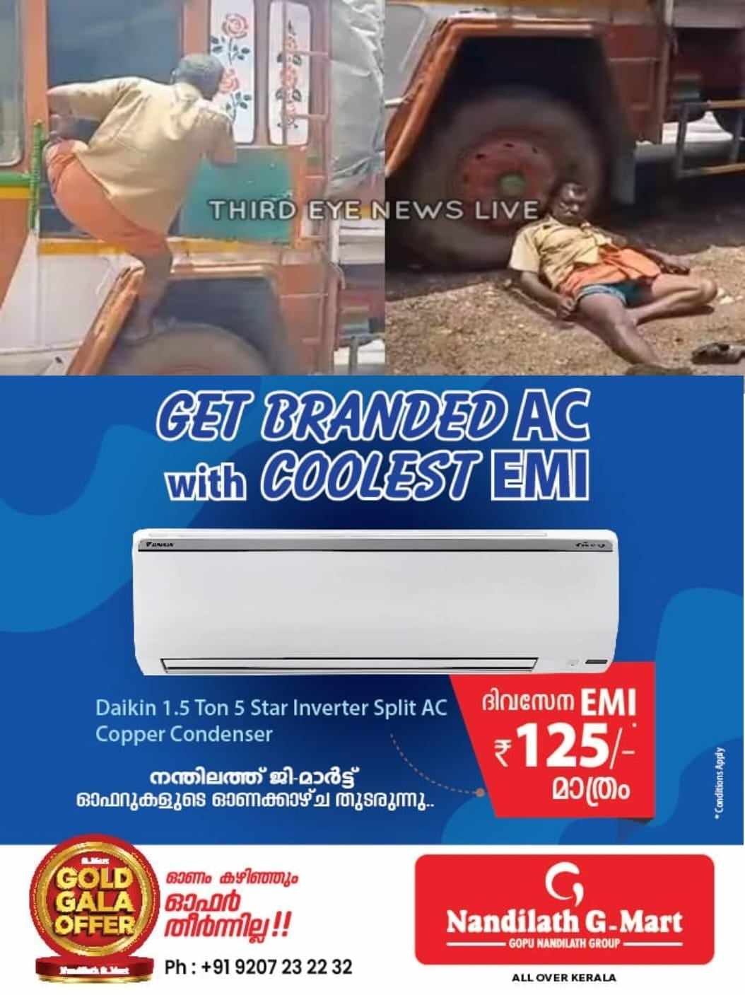 കല്ലടിക്കോട് മാപ്പിള സ്‌കൂള്‍ ജങ്ഷന് സമീപം വാഹനം നിര്‍ത്തിയ ഡ്രൈവര്‍ അമിതമായി മദ്യപിക്കുകയും തുടര്‍ന്ന് വാഹനത്തില്‍ കയറാന്‍ ശ്രമിക്കുന്നതിനിടെ താഴെ വീഴുകയുമായിരുന്നു.
