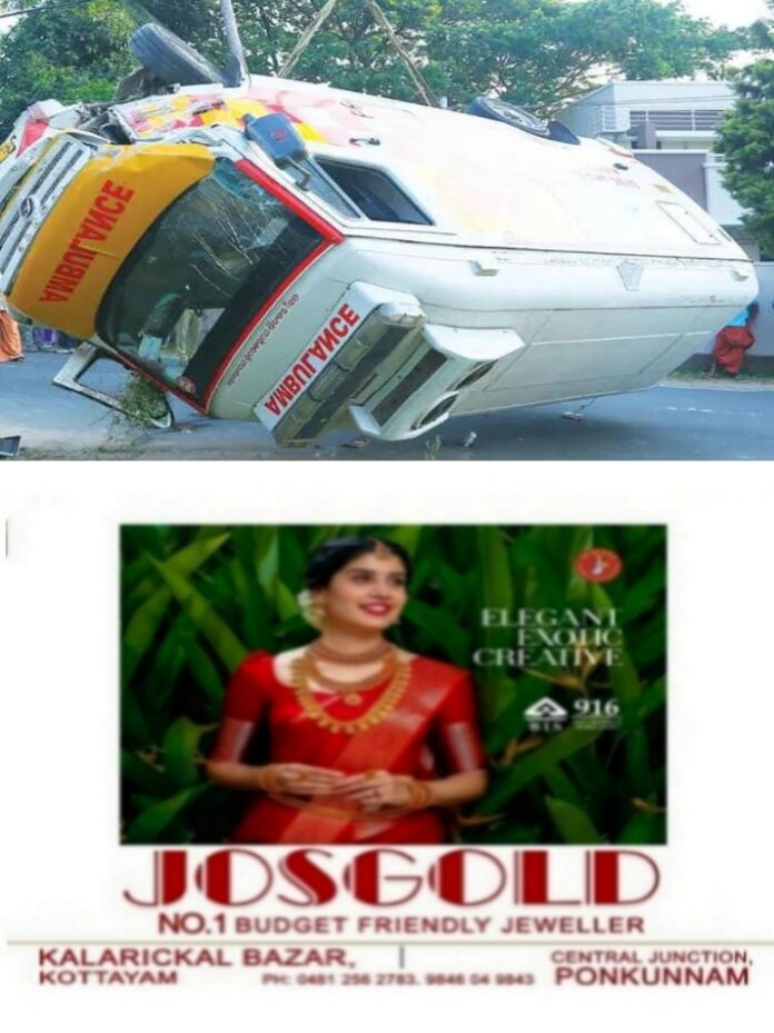 നല്ലേപ്പിള്ളി സ്വദേശി മഫ്ലുവിനെയാണ് (25) വിഷം ഉള്ളിൽച്ചെന്നനിലയിൽ ആംബുലൻസിൽ കൊണ്ടുവന്നത്. വെള്ളിയാഴ്ച ഉച്ചയ്ക്കുശേഷം ചിറ്റൂർ താലൂക്ക് ആശുപത്രിയിൽ പ്രവേശിപ്പിച്ച മഫ്ലുവിനെ വിദഗ്ധ ചികിത്സയ്ക്കായി ജില്ലാ ആശുപത്രിയിലേക്ക് ആംബുലൻസിൽ കൊണ്ടുപോവുകയായിരുന്നു. കാടാങ്കോട് ജംഗ്ഷനിൽ എതിരെ വന്ന ബൈക്കിൽ ഇടിക്കാതിരിക്കാൻ ശ്രമിക്കുന്നതിനിടെയാണ് ആംബുലൻസ് മറിഞ്ഞത്.