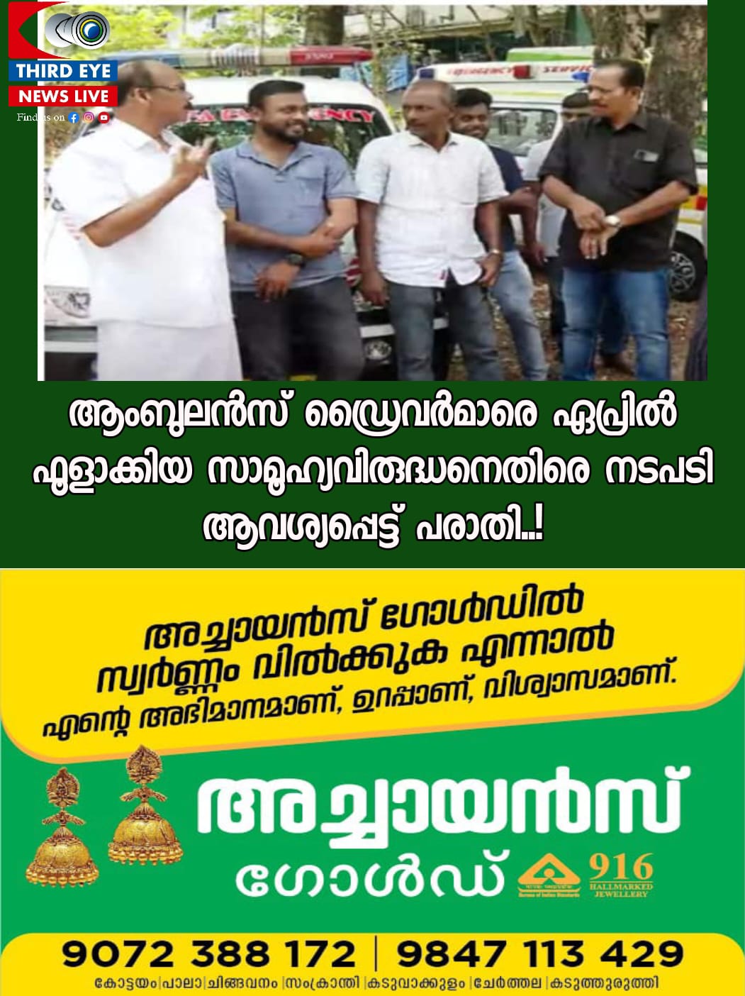 കൊച്ചി: ഗുരുതരമായി പരിക്കേറ്റ രോഗിയ്ക്ക് അടിയന്തര ആശുപത്രി മാറ്റം ആവശ്യപ്പെട്ട് ആംബുലൻസ് ഡ്രൈവർമാരെ ഏപ്രിൽ ഫൂളാക്കിയ സാമൂഹ്യവിരുദ്ധനെതിരെ നടപടി ആവശ്യപ്പെട്ട് പരാതി .എറണാകുളം കളമശ്ശേരിയിലെ ആംബുലൻസ് ഡ്രൈവർമാരാണ് പൊലീസിൽ പരാതി നൽകിയത്.
