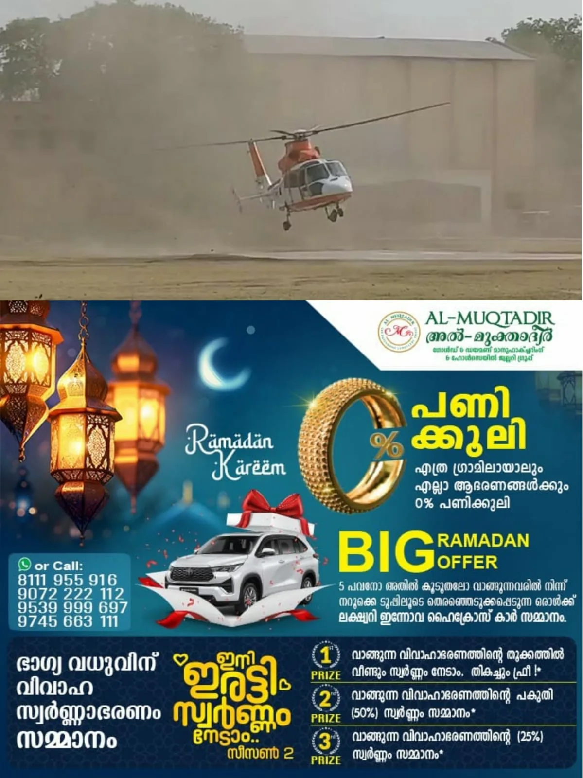 സംഭവത്തിന്റെ വിഡിയോ ദൃശ്യങ്ങൾ പുറത്തുവന്നിട്ടുണ്ട്. ഹെലികോപ്റ്റർ പറന്നുയരുന്നതും വലതുവശത്തേക്ക് ആടിയുലയുന്നതും ഏതാണ്ട് നിലത്ത് സ്പർശിക്കുന്നതും വിഡിയോയിൽ കാണാം. എന്നാൽ ഉടൻ തന്നെ പൈലറ്റ് നിയന്ത്രണം തിരിച്ചുപിടിക്കുകയും ഹെലികോപ്റ്റർ സഞ്ചാരപഥം വീണ്ടെടുത്ത് പറന്നുയരുകയും ചെയ്യുന്നതും ദൃശ്യങ്ങളിലുണ്ട്.