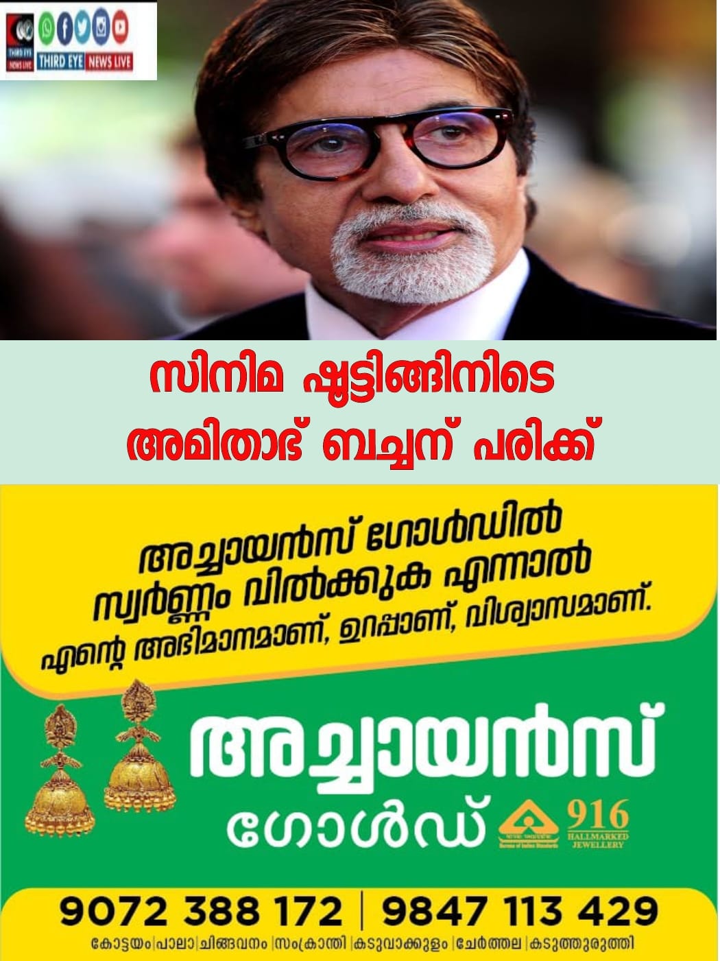 ഒരു ആക്ഷൻ രംഗം ചിത്രീകരിക്കുന്നതിനിടെ തനിക്ക് പരിക്കേറ്റെന്ന വിവരം അമിതാഭ് ബച്ചൻ തന്നെയാണ് പുറത്തുവിട്ടത്.