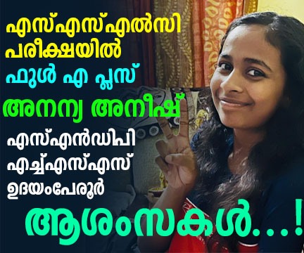 എസ്എസ്എൽസി പരീക്ഷയിൽ ഉദയംപേരൂർ എസ് എൻ ഡി പി എച്ച് എസ് എസ് സ്കൂളിലെ അനന്യ അനീഷിന് ഫുൾ എ പ്ലസ് May 8, 2024 WhatsAppFacebookTwitterLinkedin Spread the loveവൈക്കം : എസ്എസ്എൽസി പരീക്ഷയിൽ ഉദയംപേരൂർ എസ് എൻ ഡി പി എച്ച് എസ് എസ് സ്കൂളിലെ അനന്യ അനീഷിന് ഫുൾ എ പ്ലസ് ലഭിച്ചു കോട്ടയം മുൻ ഡിവൈഎസ്പി കെജി അനീഷിന്റെയും ആഷ അനീഷിൻ്റെയും മകളാണ് അനന്യ അനീഷ്.