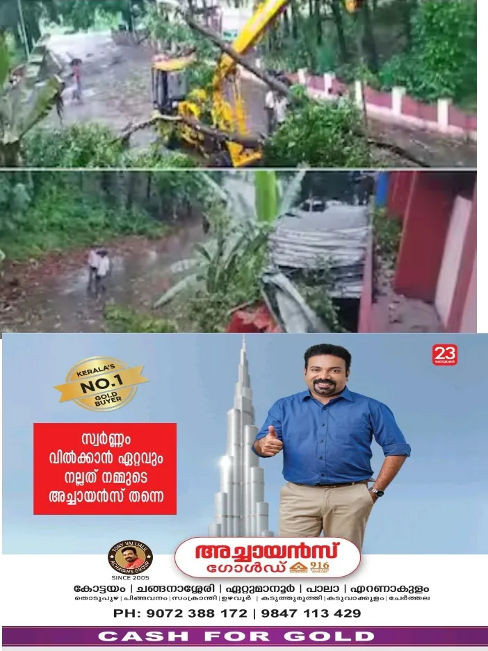 ശക്തമായ മഴയിൽ അങ്കമാലി ഫയർഫോഴ്സ് ഓഫീസിന്റെ മുകളിൽ മരം ഒടിഞ്ഞു വീണു