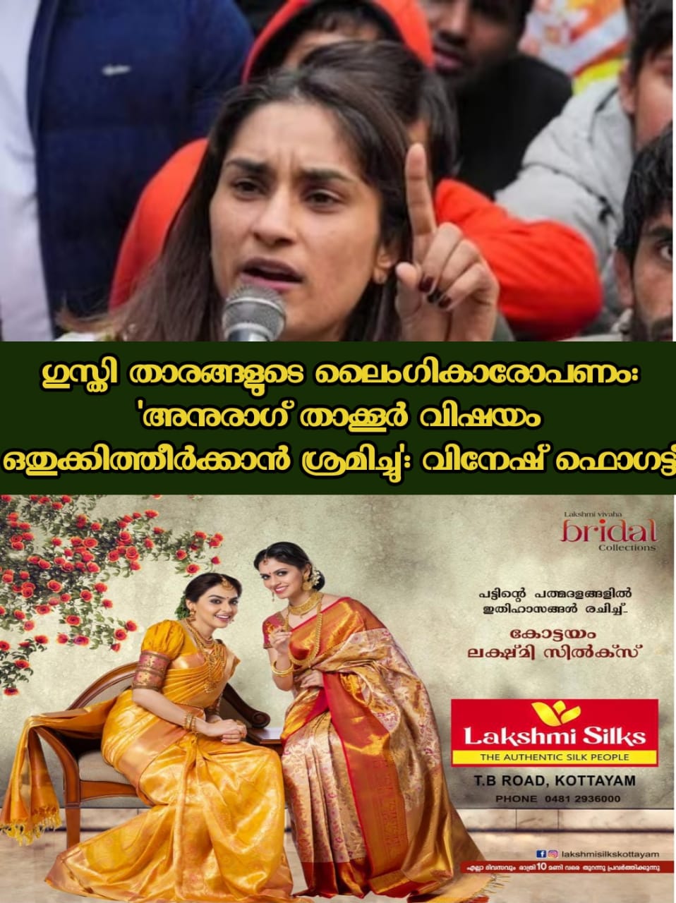 ”ജന്തർ മന്തറിൽ സമരം തുടങ്ങുന്നതിന് മൂന്ന് നാല് മാസം മുമ്പ് ഒരു ഉദ്യോഗസ്ഥനെ ഞങ്ങൾ കണ്ടിരുന്നു. വനിതാ അത്ലറ്റുകൾക്ക് നേരെ നടക്കുന്ന ലൈംഗികാതിക്രമങ്ങളെപ്പറ്റിയും അദ്ദേഹത്തോട് പറഞ്ഞിരുന്നു. നടപടിയൊന്നും എടുക്കാത്തതു കൊണ്ടാണ് ജന്തർ മന്തറിൽ സമരം തുടങ്ങാൻ തീരുമാനിച്ചത്,’ വിനേഷ് ഫോഗട്ട് പറഞ്ഞു.