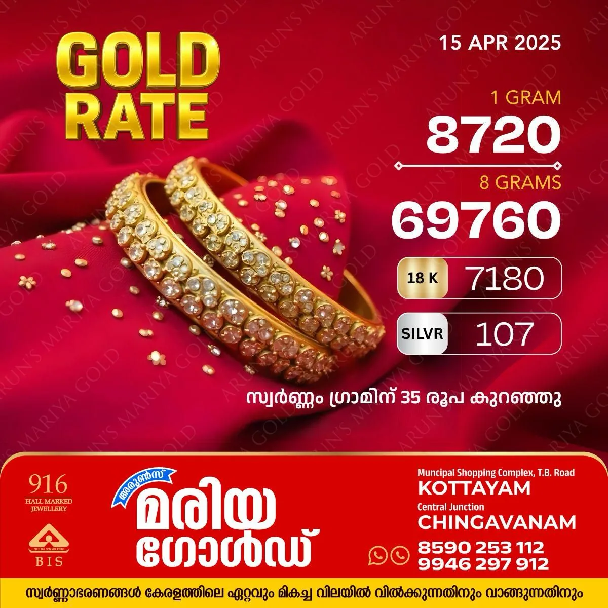 സംസ്ഥാനത്ത് സ്വർണവിലയില്‍ ഇടിവ് ; അറിയാം കോട്ടയം അരുൺസ് മരിയാ  ഗോൾഡിലെ സ്വർണ വില
