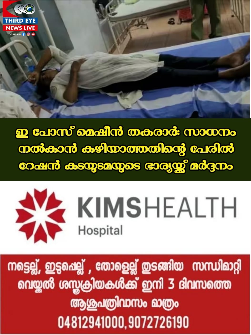 ഇ പോസ് മെഷീൻ തകരാർ കാരണം സാധനം നൽകാനാവില്ലെന്നറിയിച്ചപ്പോൾ മർദിച്ചെന്നാണ് സുനിതയുടെ പരാതി. ജാതീയ അധിക്ഷേപം നടത്തിയതായും സുനിത പറഞ്ഞു. ഇവർ കാട്ടാക്കട ആശുപത്രിയിൽ ചികിത്സ തേടി.