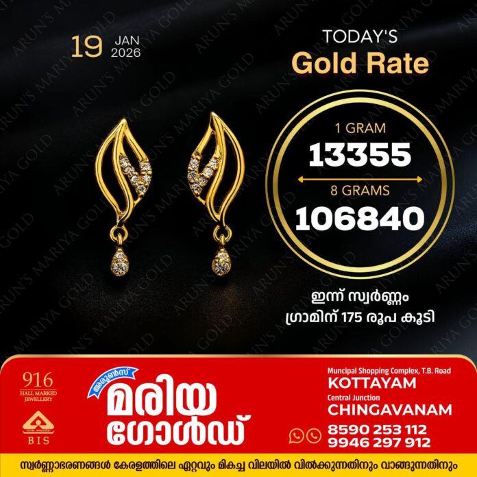 സംസ്ഥാനത്ത് ഇന്ന് (19/01/26) സ്വർണ്ണം ഗ്രാമിന് 175 രൂപ കൂടി; അറിയാം കോട്ടയം അരുൺസ് മരിയ ഗോൾഡിലെ ഇന്നത്തെ സ്വർണവില