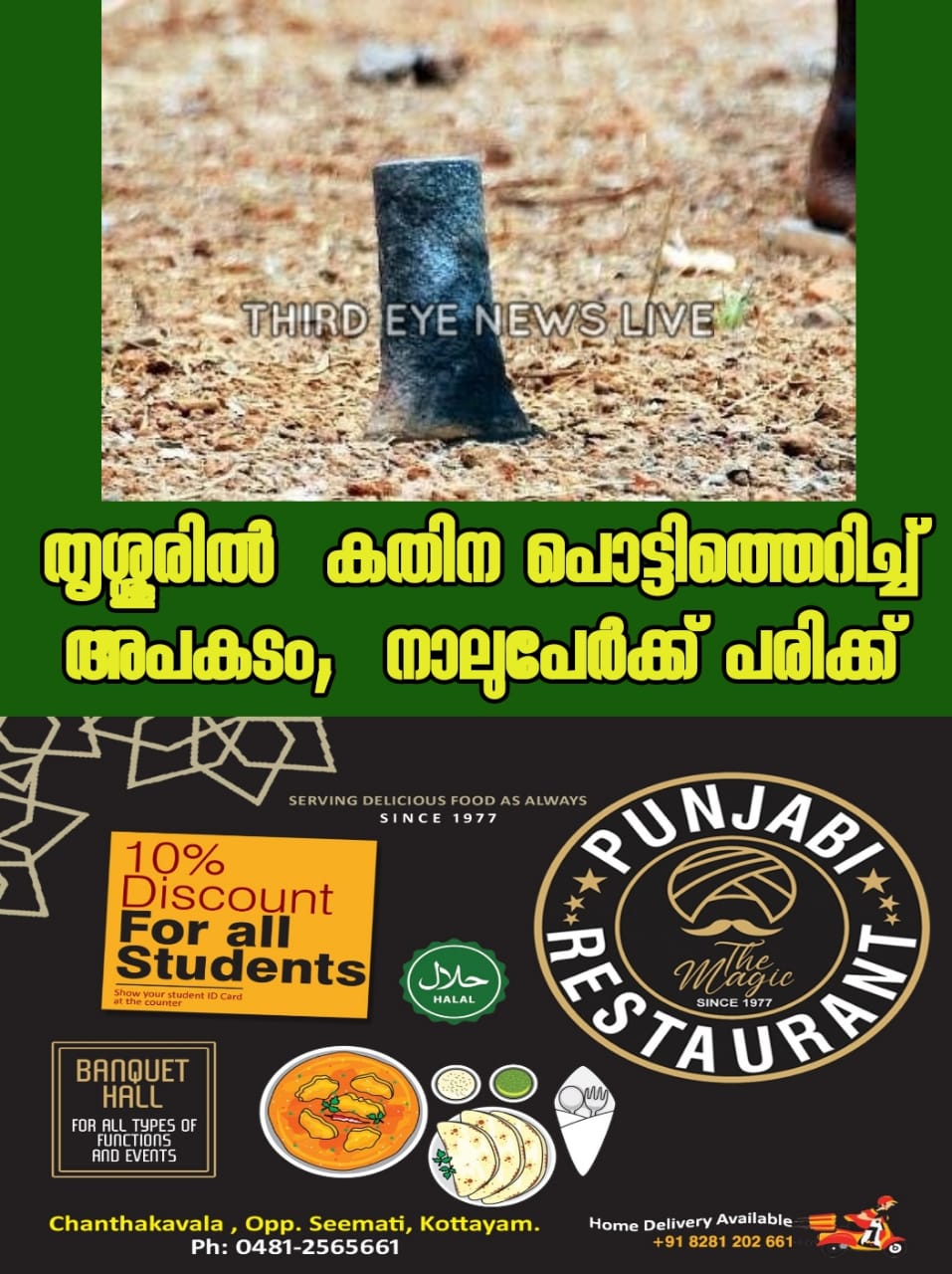തൃശ്ശൂരിൽ കതിന പൊട്ടിത്തെറിച്ച് അപകടം; നാലുപേര്‍ക്ക് പരിക്ക്; രണ്ടുപേരുടെ നില ഗുരുതരം
