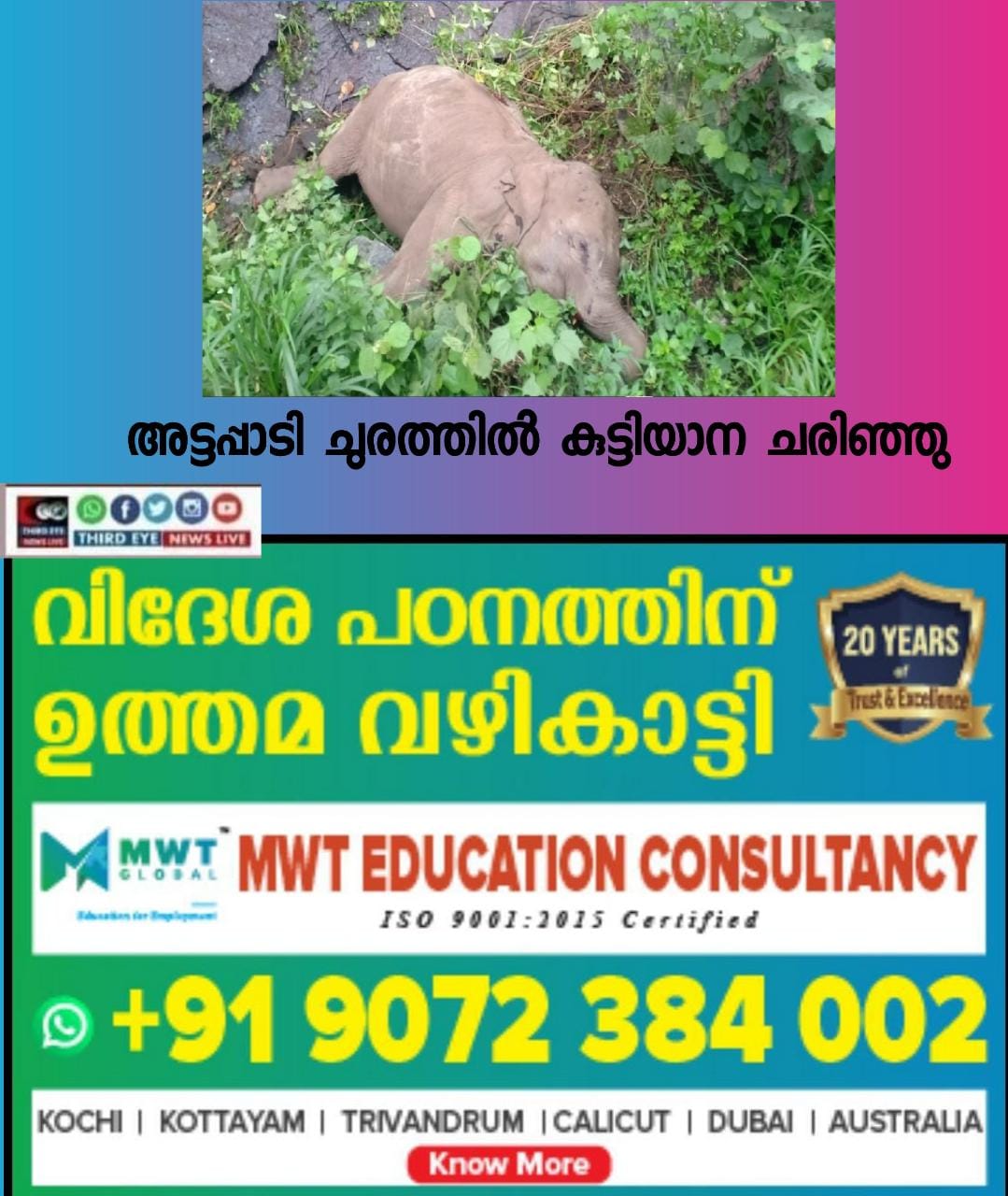 അട്ടപ്പാടി ചുരത്തിൽ കുട്ടിയാന ചരിഞ്ഞു;പാറയിൽ നിന്ന് നിരങ്ങി വീണ നിലയിലാണ് ആനയുടെ ജഡം കണ്ടെത്തിയത്