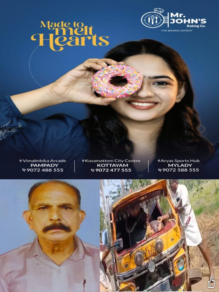 ഉടൻ ആശുപത്രിയിൽ എത്തിച്ചെങ്കിലും ജീവൻ രക്ഷിക്കാനായില്ല. ഇന്നലെ ഉച്ചകഴിഞ്ഞ് മുന്നോടെയായിരുന്നു അപകടമുണ്ടായത്. വെച്ചൂർ അച്ചിനകം കാരാപ്പള്ളി ജിജോയാണ് ഓട്ടോ ഓടിച്ചിരുന്നതെന്ന് നാട്ടുകാർ പറഞ്ഞു..