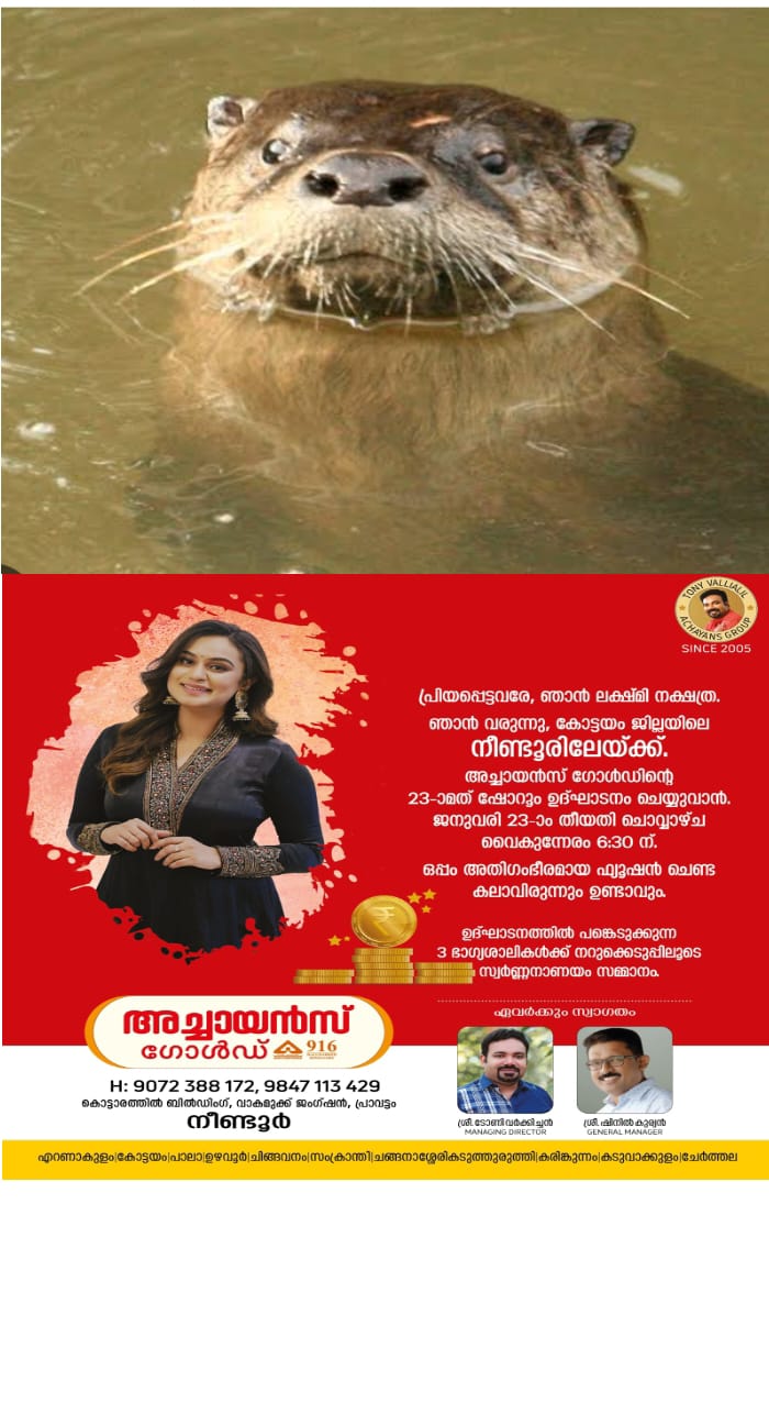 കരീമഠം : അയ്മനം പഞ്ചായത്തിൽ ഒന്നാം വാർഡിലെ കരീമഠം പ്രദേശത്ത് നീർനായ് ശല്യം അതിരൂക്ഷം. പുഷ്പ്പ തടത്തിൽ വീട്ടിൽ സജിമോൻ വിളവെടുത്ത ശേഷം ആറ്റിൽ വലയ്ക്കുള്ളിൽ സൂക്ഷിച്ച വളർത്തു മത്സ്യങ്ങളെ കഴിഞ്ഞ രാത്രിയിൽ നീർനായ കൂട്ടം തിന്നു . സിലോപ്പിയ, വരാൽ എന്നീ മത്സ്യങ്ങളെയാണ് നീർനായ്ക്കൾ തിന്നു തീർത്തത്.