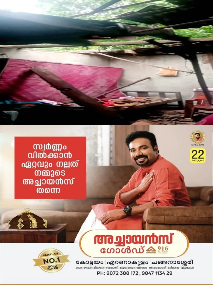 ഇന്നലെ പകൽ പെയ്ത കനത്ത മഴയിൽ ഓടിട്ട വീടിന്റെ മേൽക്കൂരയിൽ വെള്ളം ഇറങ്ങിയതിനെത്തുടർന്ന് കൂട്ട് തകർന്നതാണ് മേൽക്കൂര ഇടിഞ്ഞു വീഴാൻ കാരണം.