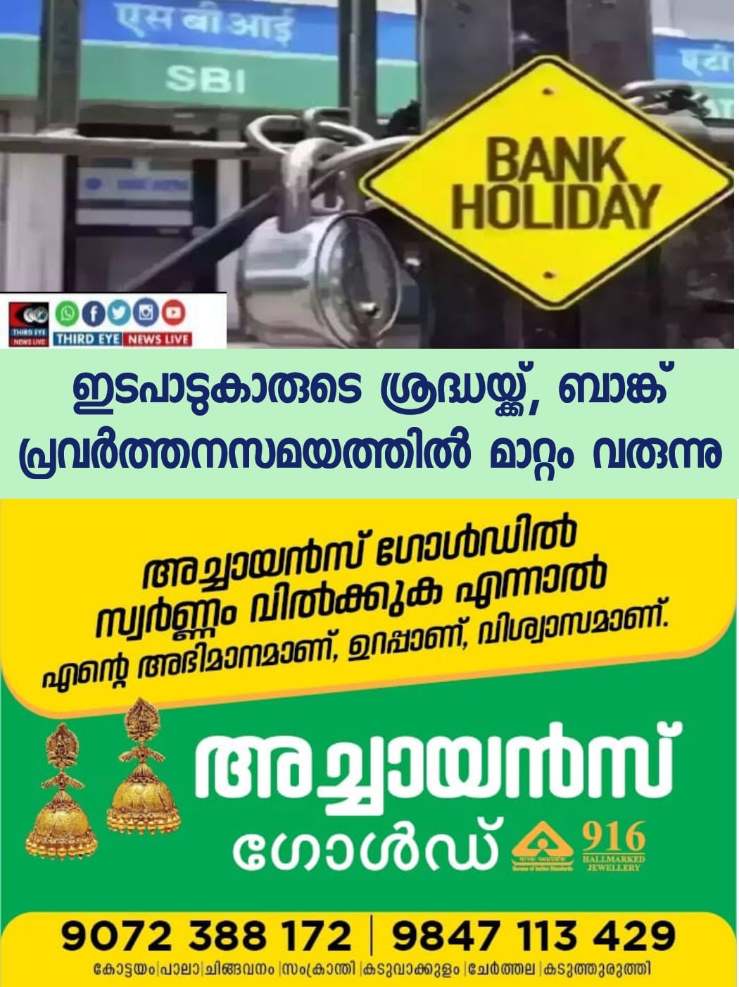 ഇടപാടുകാരുടെ ശ്രദ്ധയ്ക്ക്; ഇക്കാര്യങ്ങൾ അറിയാതെ ബാങ്കിൽ പോയാൽ പണി കിട്ടും; ബാങ്ക് പ്രവര്‍ത്തനസമയത്തില്‍ മാറ്റം വരുന്നു; വിവരങ്ങൾ അറിയാം