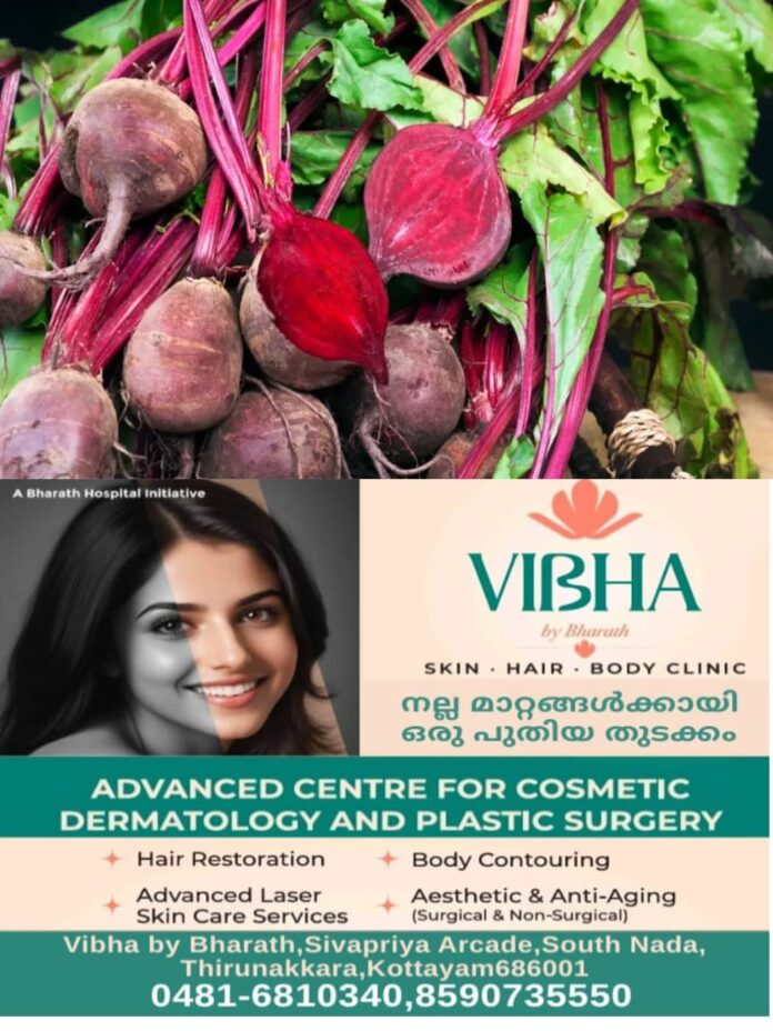 കോട്ടയം: ബീറ്റ്റൂട്ടിന് നിരവധി ഗണങ്ങളാണ് ബീറ്റ്റൂട്ടിലെ ആൻ്റിഓക്സിഡൻ്റുകള് പ്രതിരോധശേഷി വർദ്ധിപ്പിക്കുകയും തലച്ചോറിൻ്റെ പ്രവർത്തനത്തെ സഹായിക്കുകയും ചെയ്യുന്നു.