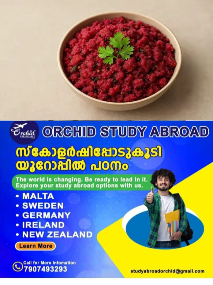 ആഴ്ചയില്‍ ഒരിക്കല്‍ വീടുകളില്‍ ഉണ്ടാക്കാറുള്ള ഈ വിഭവം, ചിലപ്പോള്‍ സ്ഥിരം ശൈലിയില്‍ നിന്ന് മാറി ട്രൈ ചെയ്യാൻ ആഗ്രഹം തോന്നാറുണ്ട്. ബീറ്റ്റൂട്ട് ഉപയോഗിച്ചുള്ള പുതിയ ഒരു ഉപ്പുമാവ് റെസിപ്പി ഇതാണ്, ഇത് കുട്ടികള്‍ക്കും മുതിർന്നവർക്കും ഒരുപോലെ ഇഷ്ടപ്പെടും, കൂടാതെ തയ്യാറാക്കുകയും എളുപ്പമാണ്.
