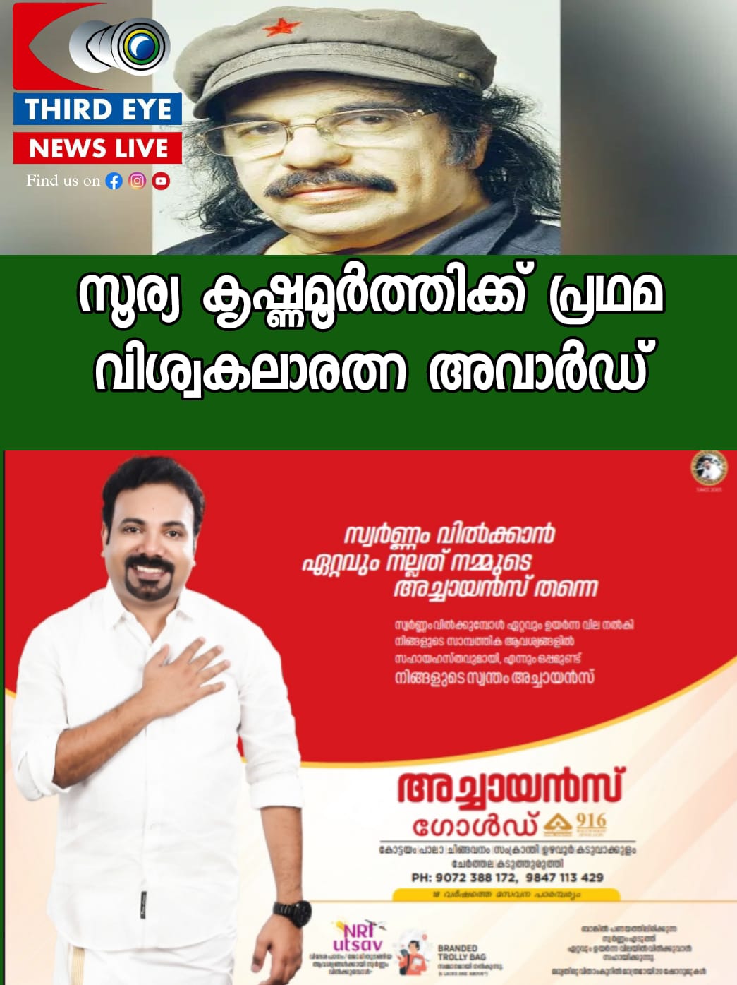 മനാമ :ഇന്ത്യന് കലകളുടെ സവിശേഷതകളും സൗന്ദര്യവും ഇന്ത്യക്കകത്തും പുറത്തും പ്രചരിപ്പിക്കുകയും സൂര്യ എന്ന പേരില് കലാഭിരുചിയുള്ള മനുഷ്യരുടെ മഹാപ്രസ്ഥാനം ആരംഭിക്കുകയും ചെയ്ത സൂര്യകൃഷ്ണ മൂര്ത്തിയുടെ ബഹുതല സ്പര്ശിയായ കലാ സേവനങ്ങളിലുള്ള ആദരവ് പ്രകടിപ്പിച്ചാണ് അദ്ദേഹത്തിന് അവാര്ഡ് സമ്മാനിക്കുന്നതെന്ന് പി.വി. രാധാകൃഷ്ണപിള്ള പറഞ്ഞു.