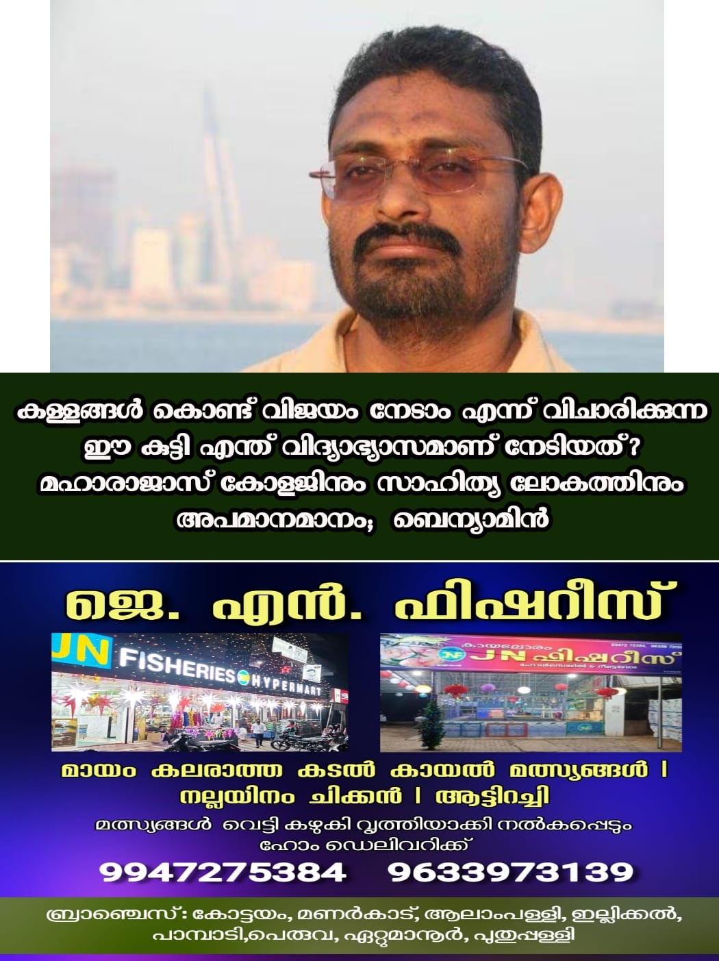 വ്യാജസർട്ടിഫിക്കറ്റ് ഉണ്ടാക്കി അധ്യാപക ജോലി നേടാൻ ശ്രമിച്ച വിദ്യ മഹാരാജാസ് കോളജിനും സാഹിത്യ ലോകത്തിനും അപമാനമാണെന്ന് പ്രശസ്ത സാഹിത്യകാരന് ബെന്യാമിൻ കുറ്റപ്പെടുത്തി. വിദ്യാർത്ഥി സമൂഹത്തിനും അപമാനമാണ്. എന്നും ബെന്യാമിൻ ഫെയ്സ്ബുക്ക് കുറിപ്പിൽ ചോദിച്ചു.
