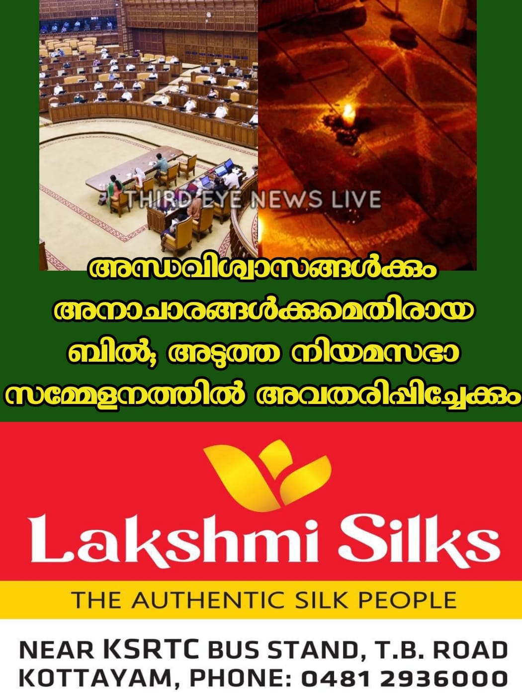 തിരുവനന്തപുരം: അനാചാരങ്ങൾക്കും അന്തവിശ്വാസങ്ങൾക്കും എതിരായി 2014 ൽ തയ്യാറാക്കിയ ബിൽ മുഖ്യമന്ത്രിയുടെ പരിഗണനയ്ക്കായ് സമർപ്പിച്ചു. ആഭ്യന്തര വകുപ്പ് തയ്യാറാക്കിയ കരട് ബിൽ അടുത്ത നിയമ സഭാ സമ്മേളനത്തിൽ അവതരിപ്പിക്കും.