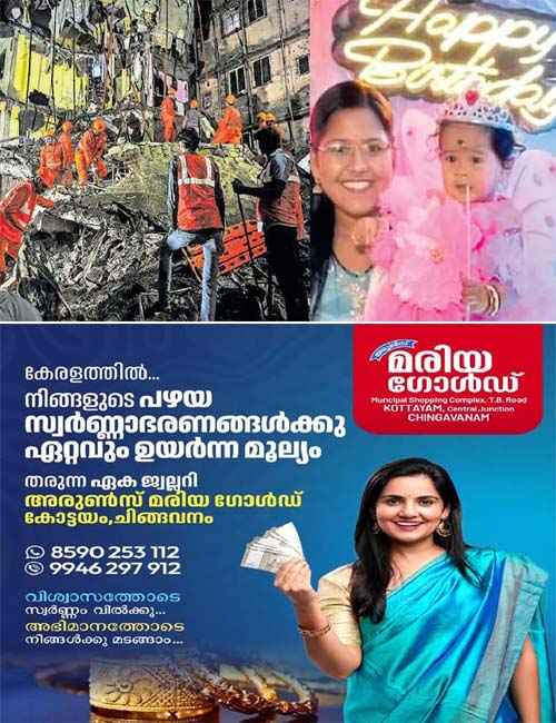 വസായ്: പിറന്നാളാഘോഷിക്കുന്ന കുഞ്ഞും അമ്മയും ഉൾപ്പെടെ കെട്ടിടം തകർന്ന് 17 പേർ മരിച്ചു. ഉത്കർഷ ജോയിലിന്റെ ഒന്നാം പിറന്നാൾ ആഘോഷത്തിനിടെയാണു ദുരന്തം. വിജയ് നഗറിൽ 50 ഫ്ലാറ്റുകളുള്ള രാം ഭായി സമുച്ചയത്തിലെ 12 ഫ്ലാറ്റുകൾ അടങ്ങിയ 4 നില വിങ്ങാണു ബുധനാഴ്ച പുല‍ർച്ചെ 12.05നു സമീപത്തെ ഒഴിഞ്ഞ കെട്ടിടത്തിനു മുകളിലേക്കു തകർന്നുവീണത്.