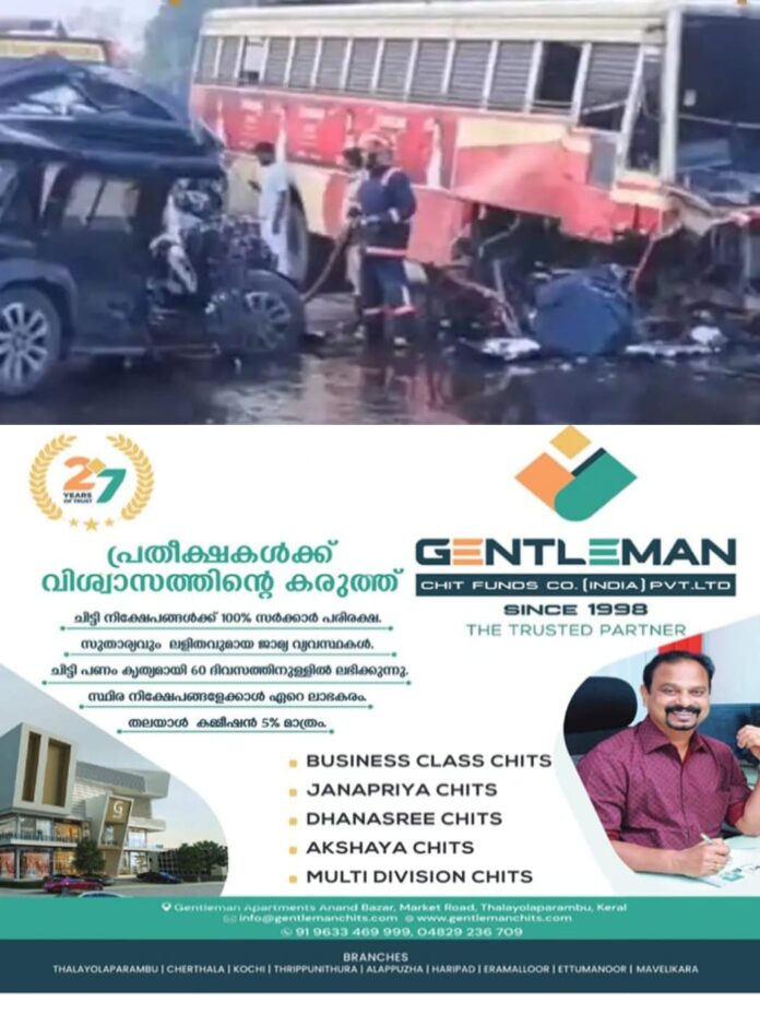 ചേർത്തലയിലേക്കുപോയ ഫാസ്റ്റ് പാസഞ്ചർ ബസും എതിർദിശയില് നിന്നുവന്ന ഥാർ ജീപ്പും ദേശീയ പാതയില് കൂട്ടിയിടിക്കുകയായിരുന്നു. ബസിന്റെ മുൻഭാഗവും തകർന്നു.