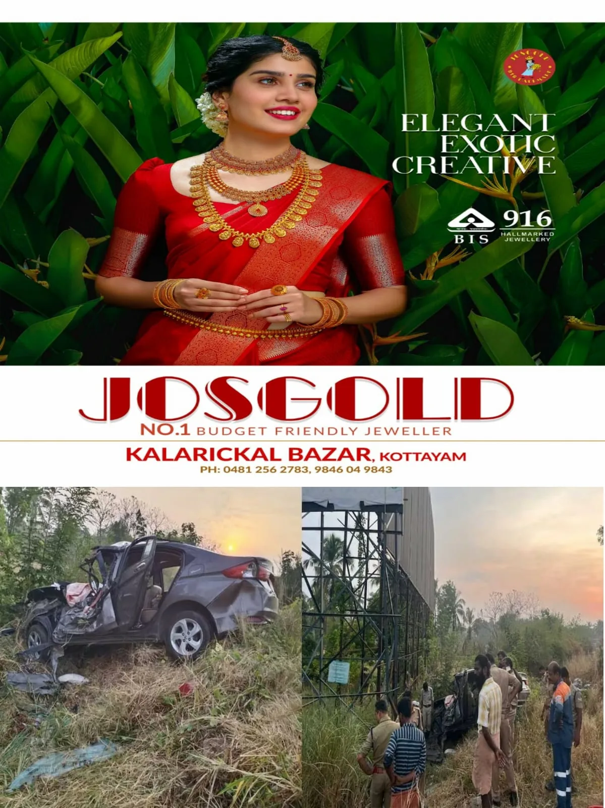കാർ റോഡരികിലെ പരസ്യ ബോർഡിൽ ഇടിച്ചു മറിഞ്ഞു; അപകടത്തിൽ ഒരു മരണം, 3 പേർക്ക് പരുക്ക്
